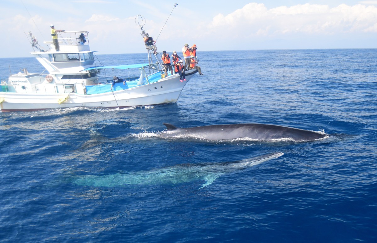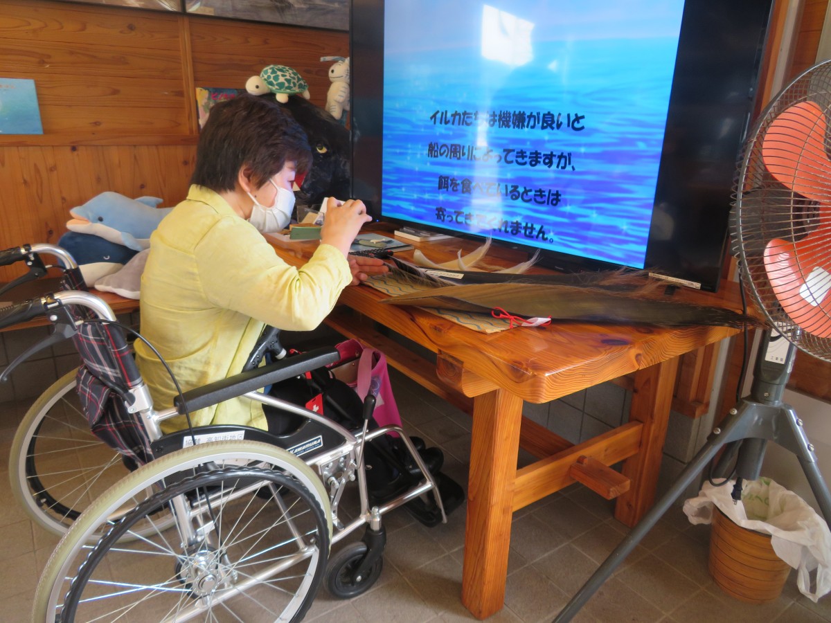 管理棟 展示物 クジラの写真やひげなどが展示されている ひげは、触ることができる