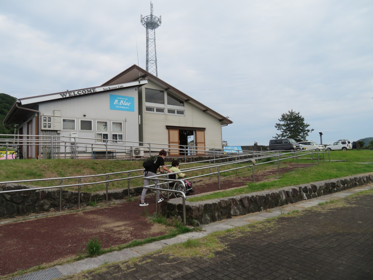 管理棟から船着場までの経路 緩やかなスロープあり 斜度3度