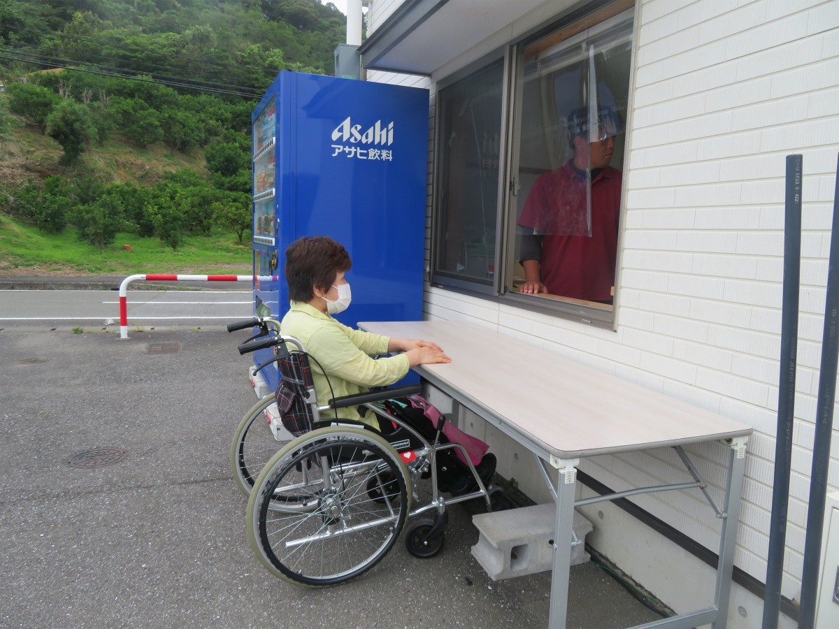 管理棟 受付(屋外) カウンターの高さ 66センチ 外国語はアプリで対応