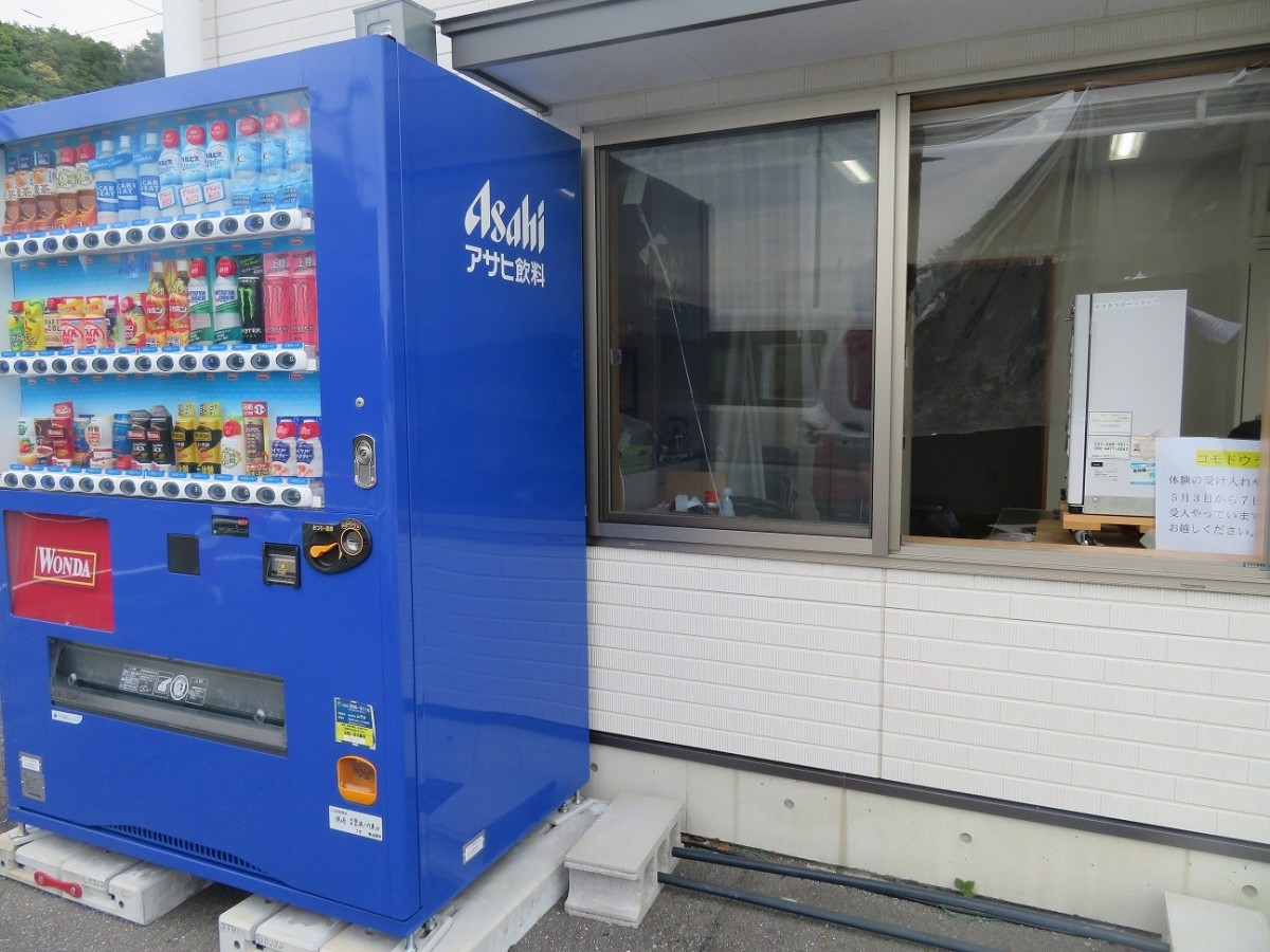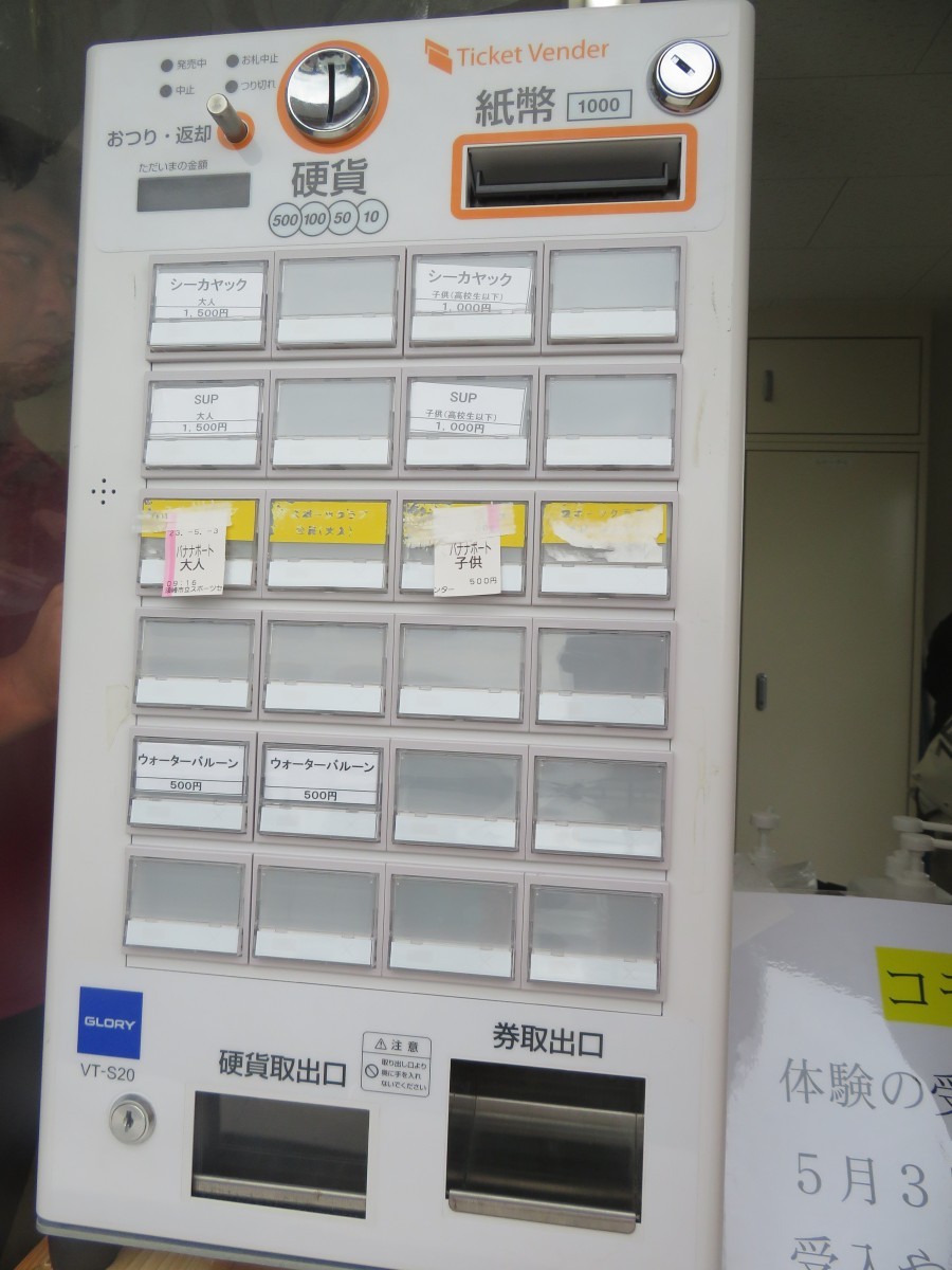 管理棟 受付(屋外) 発券機 こちらでチケットを購入する (撮影は、準備前の発券機の様子)