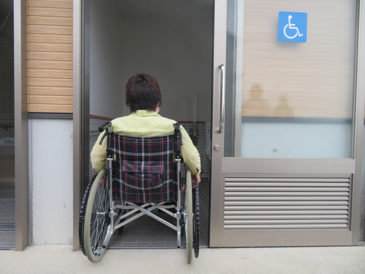 車いす対応トイレ(管理棟横) スライド戸 入口幅84センチ 段差無し