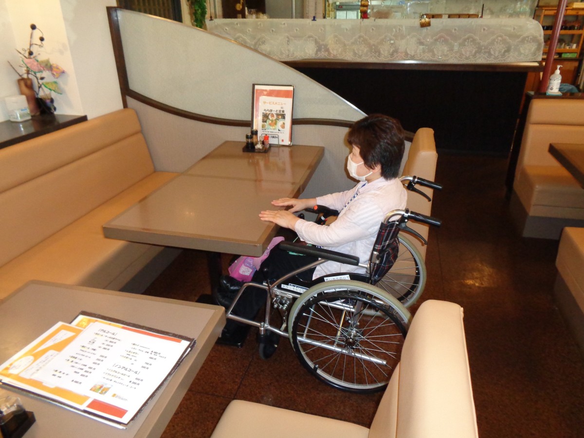 車いすで利用する際は、タイヤを拭くかタイヤカバー必要