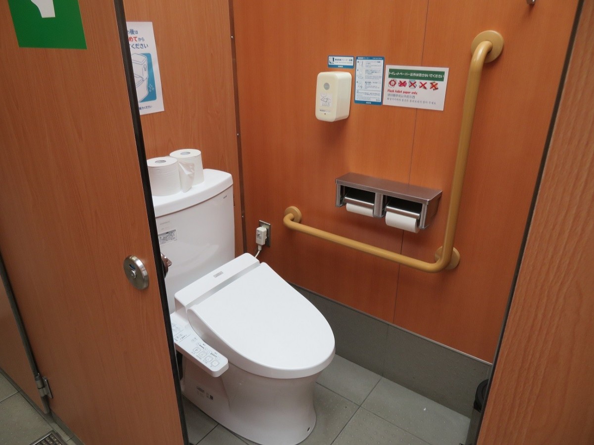 女性用一般トイレ 洋式トイレ1室に手すりあり 男性用も同じ