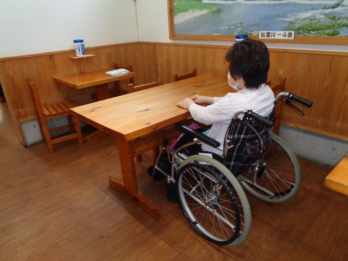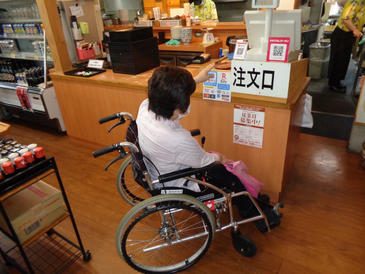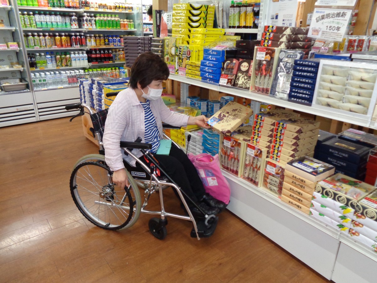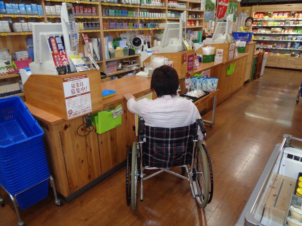 売店のレジの様子 カウンター 高さ80センチ