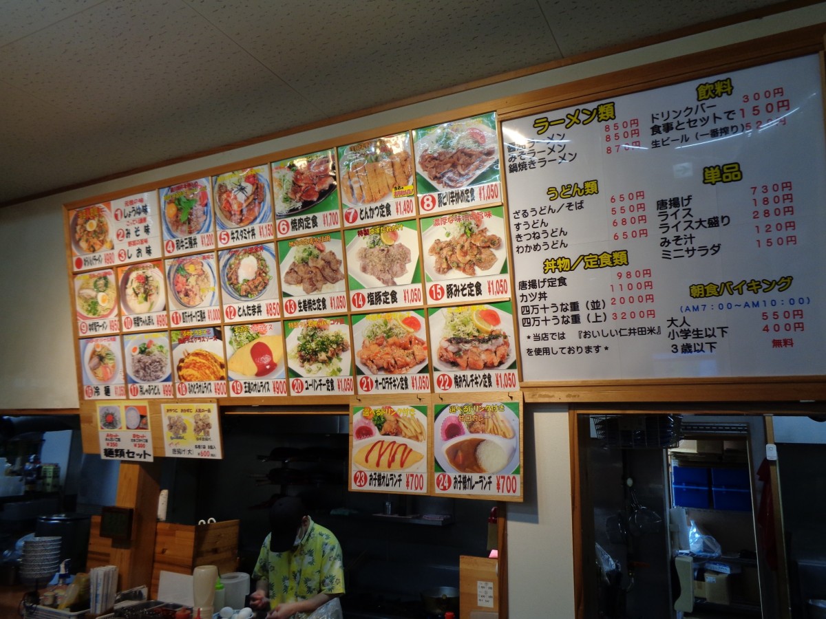 レストラン メニュー(ラストオーダーは19時30分) 地元食材を使ったメニューが豊富、軽食を販売するおにぎりカフェもあり