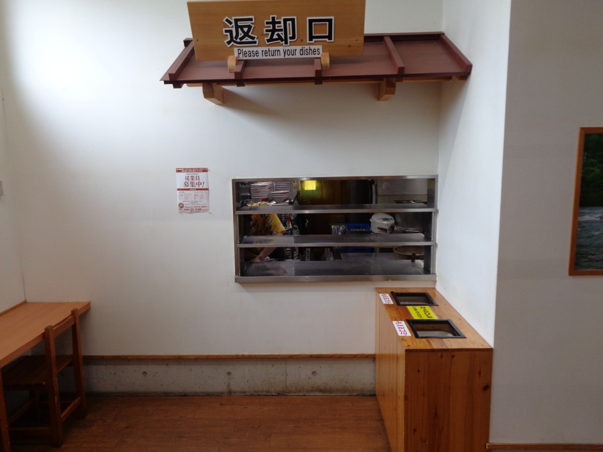 レストラン 返却口の様子 返却口下高さ89センチ