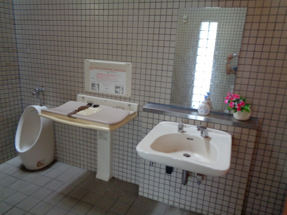 東側別棟の車いす対応トイレ ベビーシート、子供用小便器あり