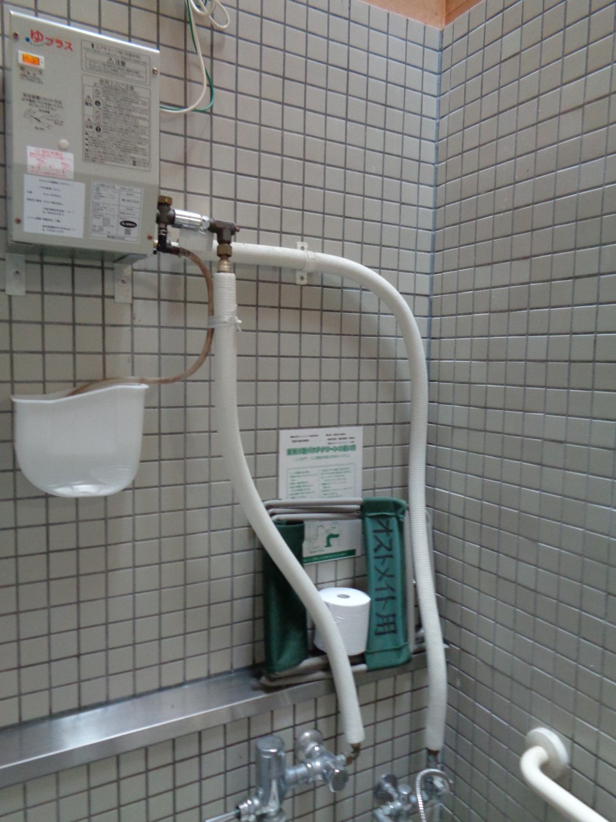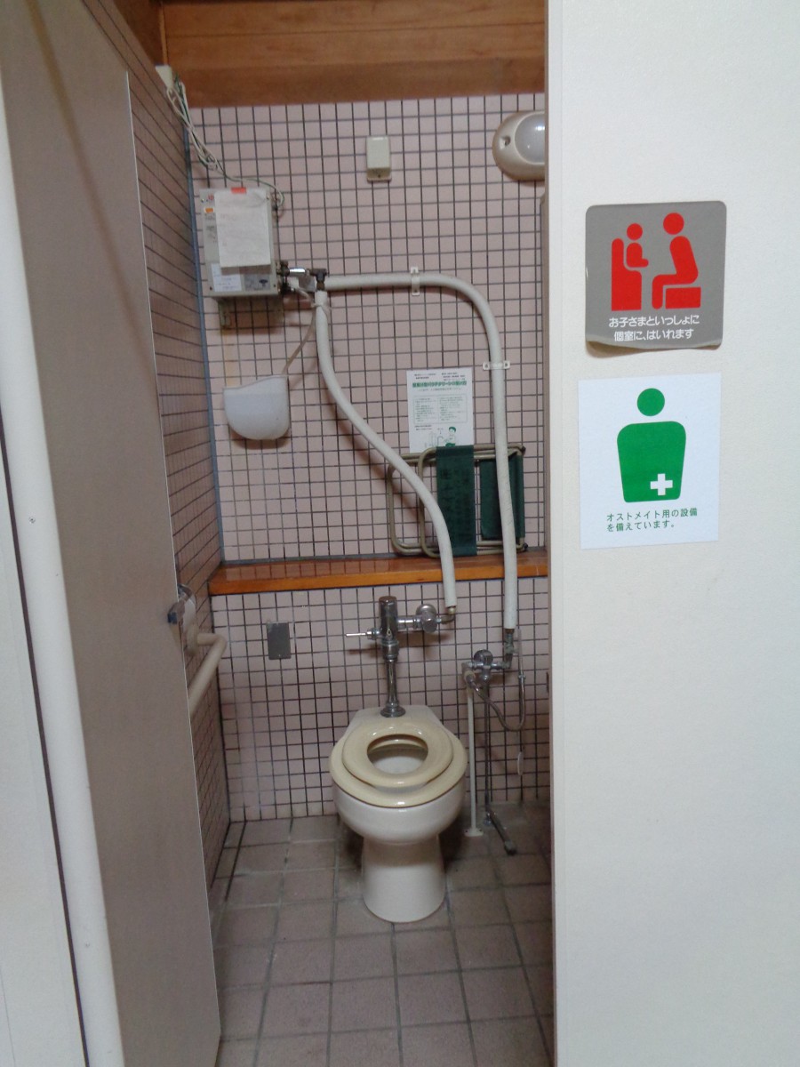 東側別棟の一般トイレ オストメイト対応設備あり 折りたたみイスあり