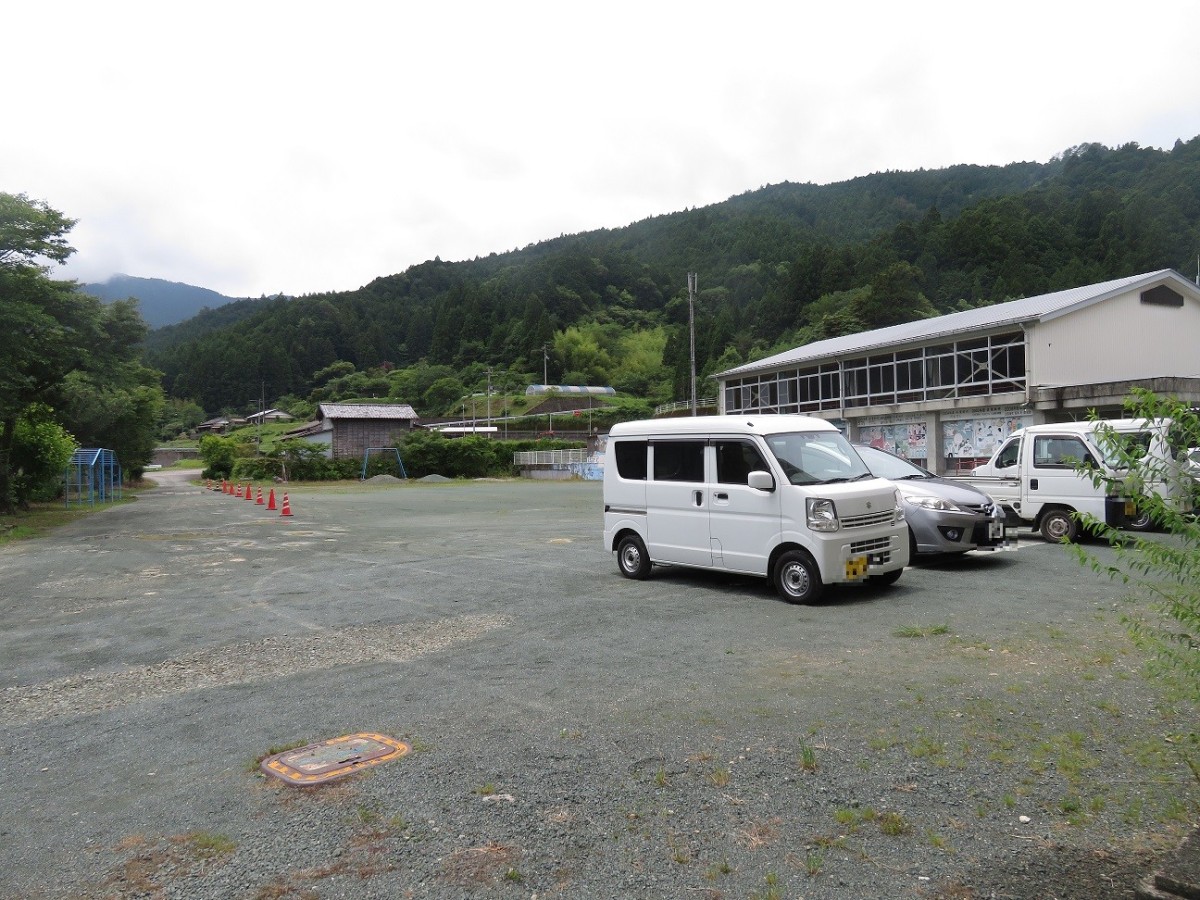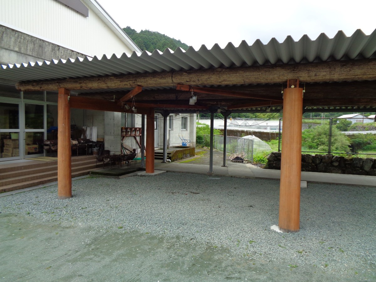 バームクーヘン作り体験場所 (屋外) 屋根あり、足元は土と砂利