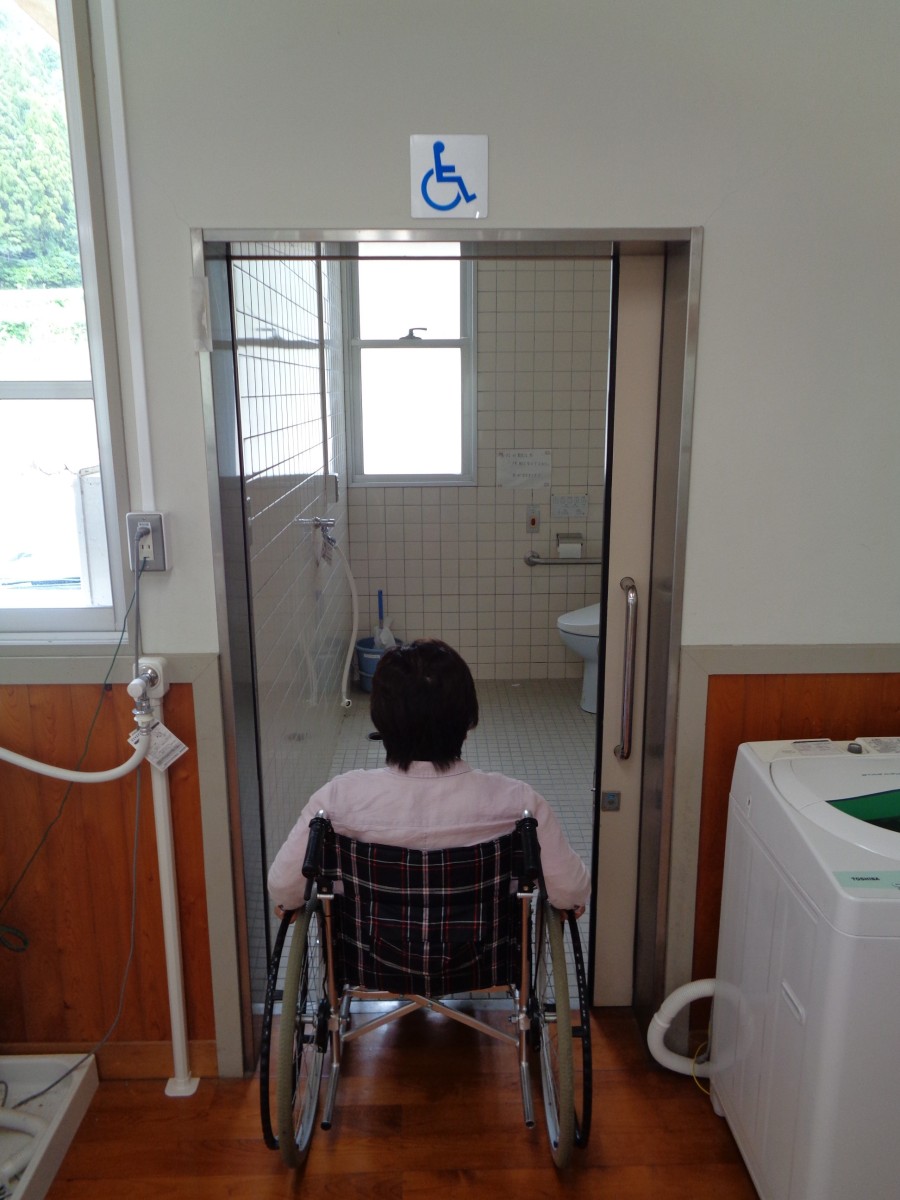 1階 車いす対応トイレ スライド戸 入口幅85センチ 段差なし