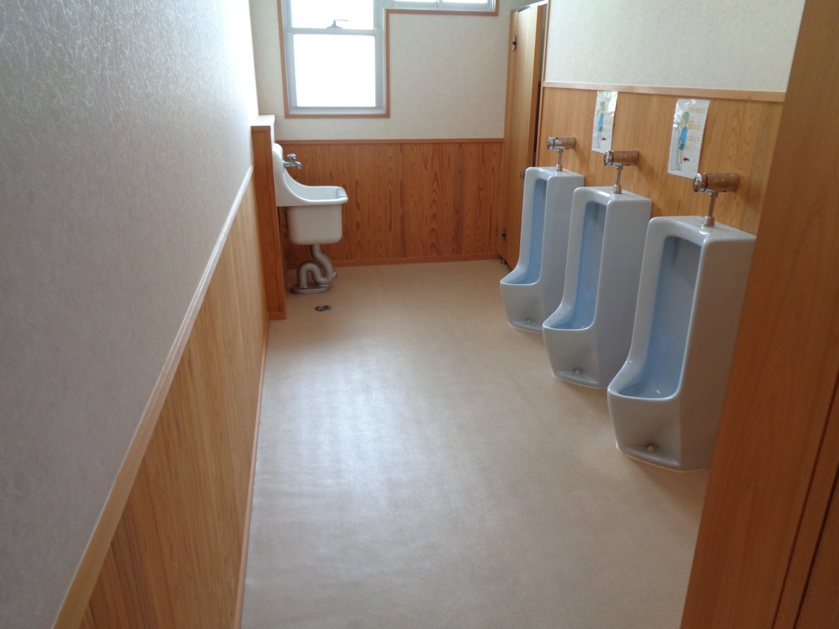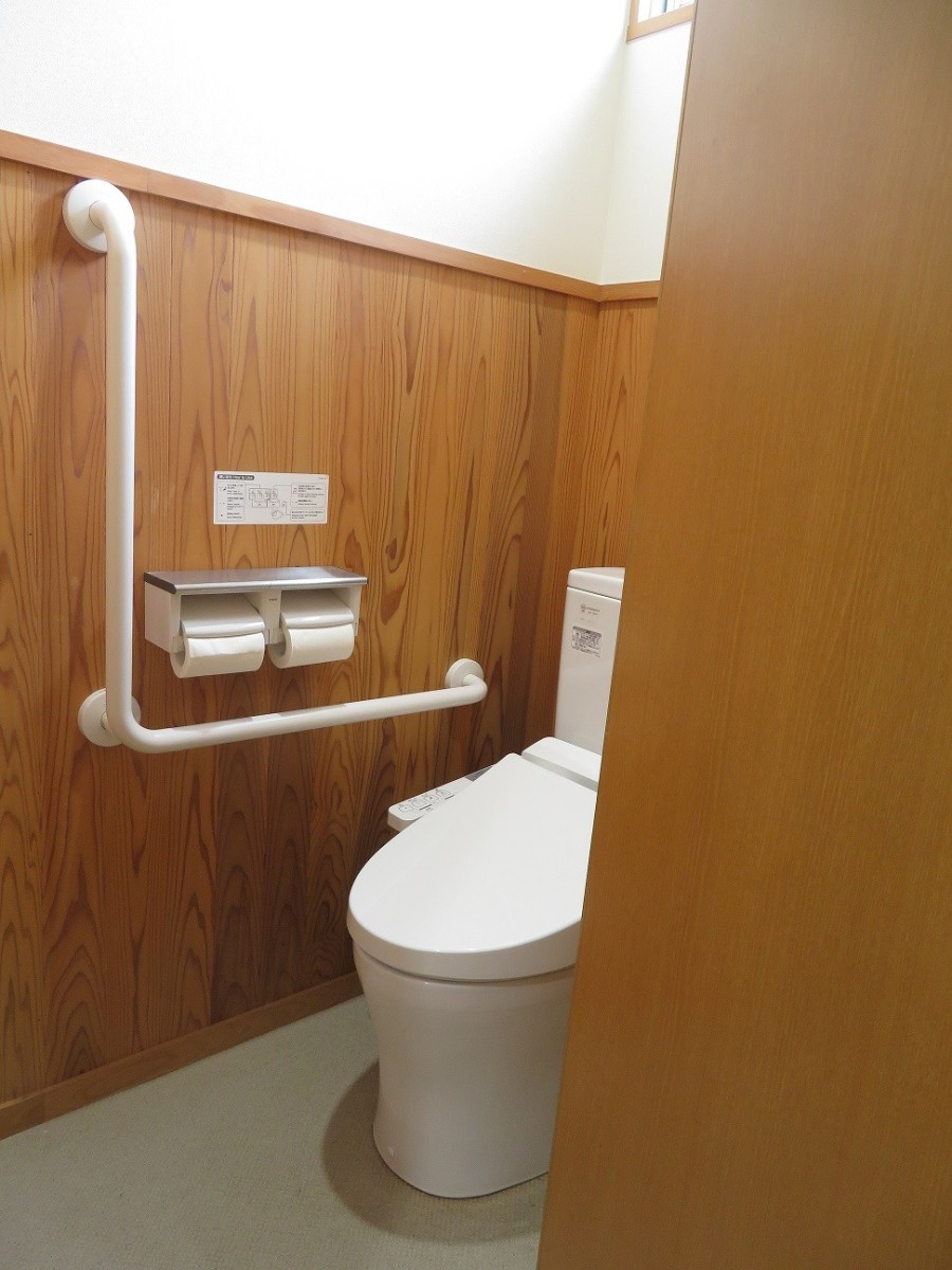 1階 男性用一般トイレ 洋式トイレに手すりあり 女性用も同じ造り
