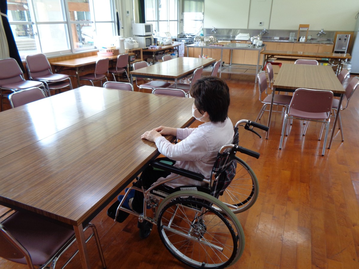 1階 食堂(家庭科室) テーブル下高さ64センチ 自炊や持ち込み、冷蔵庫利用も可