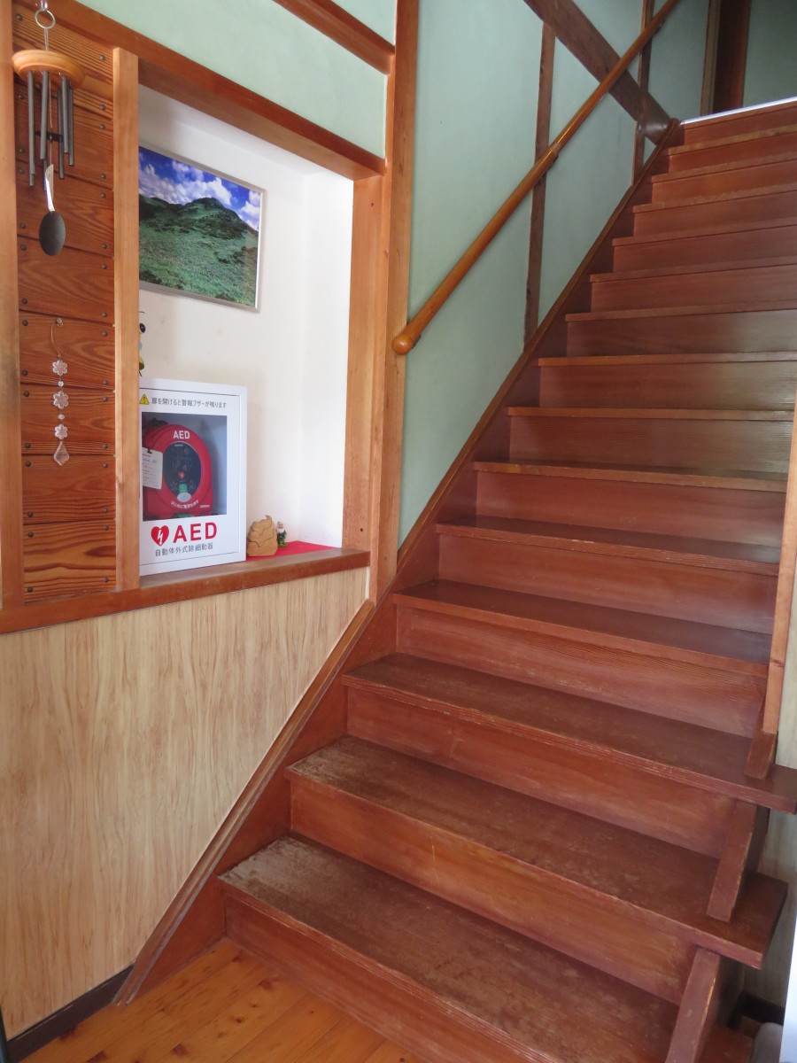 階段 2階の客室への経路は階段のみ 1段の高さ18センチ、手すりあり