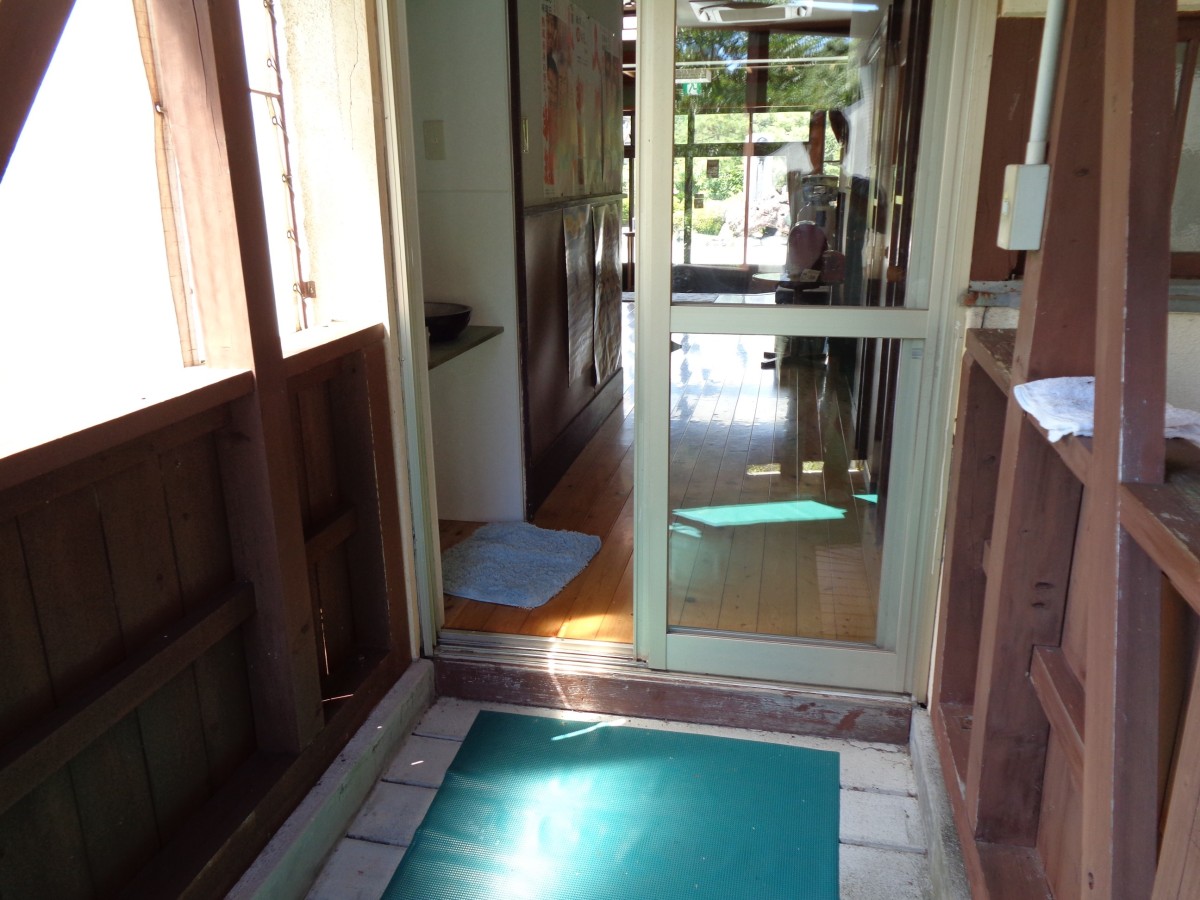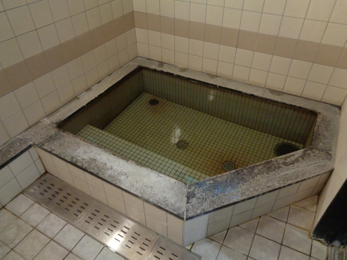 大浴場への経路 スライド戸幅55センチ 段差あり17センチ 経路はスロープになっている 斜度4〜7度
