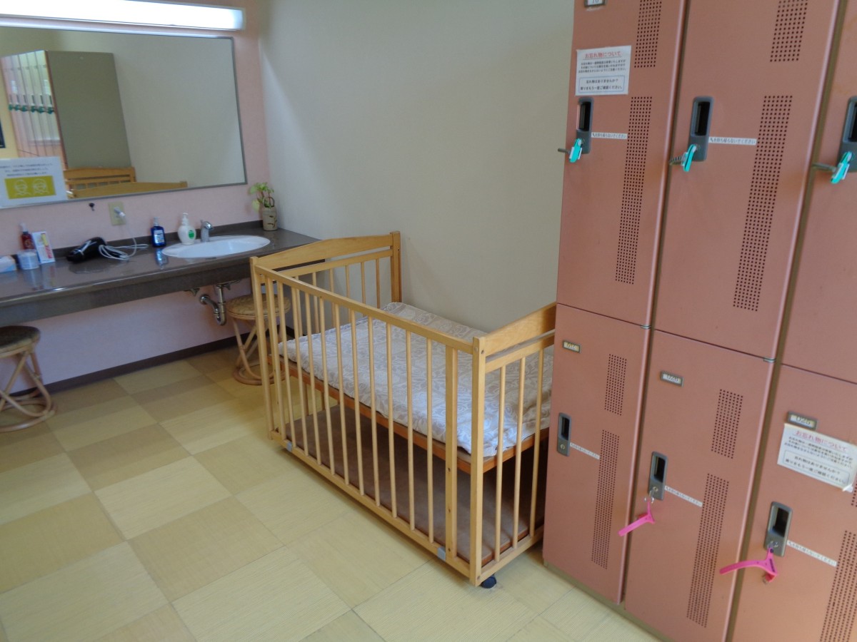 大浴場 女性用には、ベビーベッドとおむつ用ゴミ箱あり
