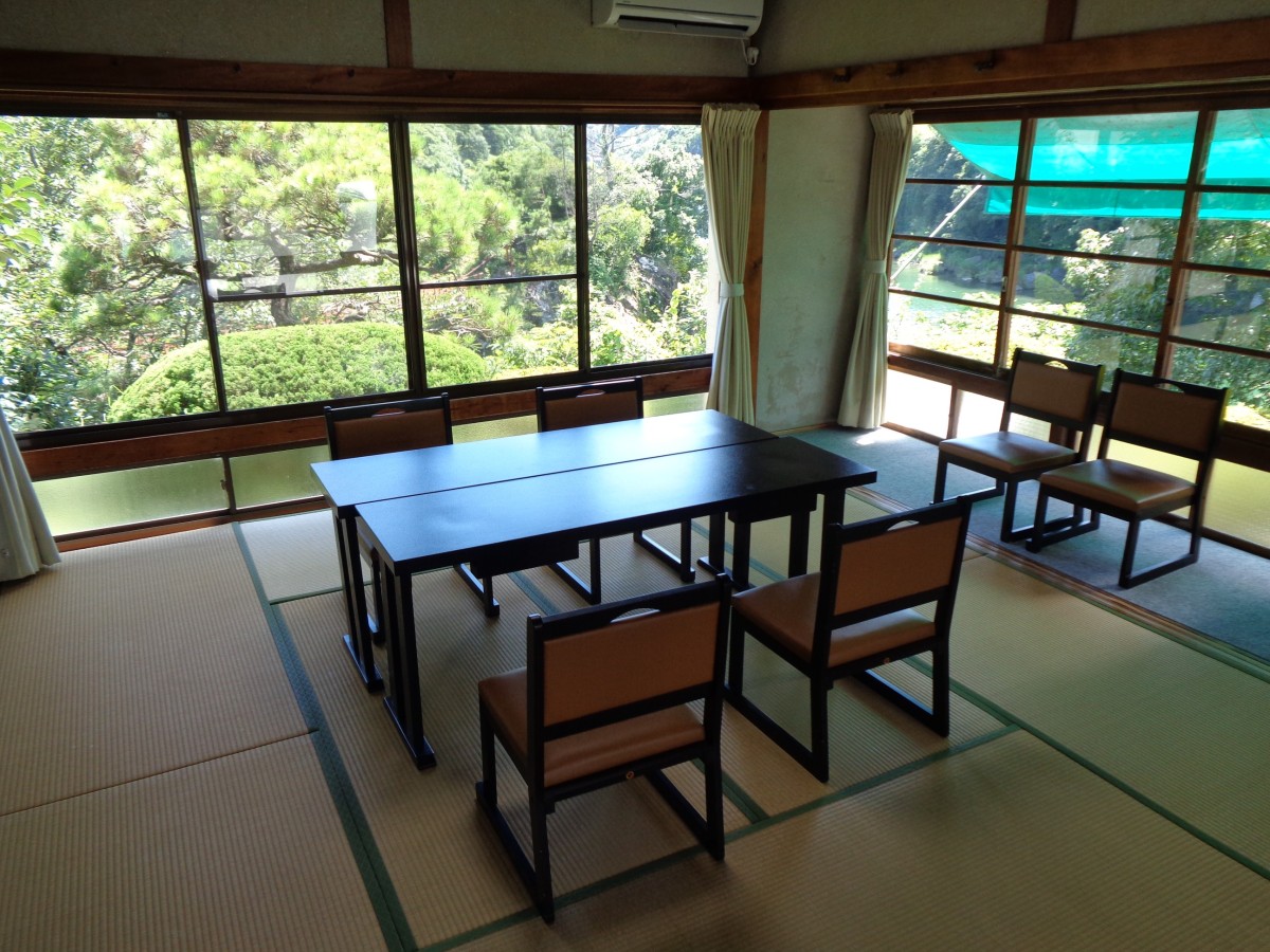 1階 お食事処 和室タイプでテーブル席あり テーブル下高さ53センチ 窓からは絶景の物部川が見える