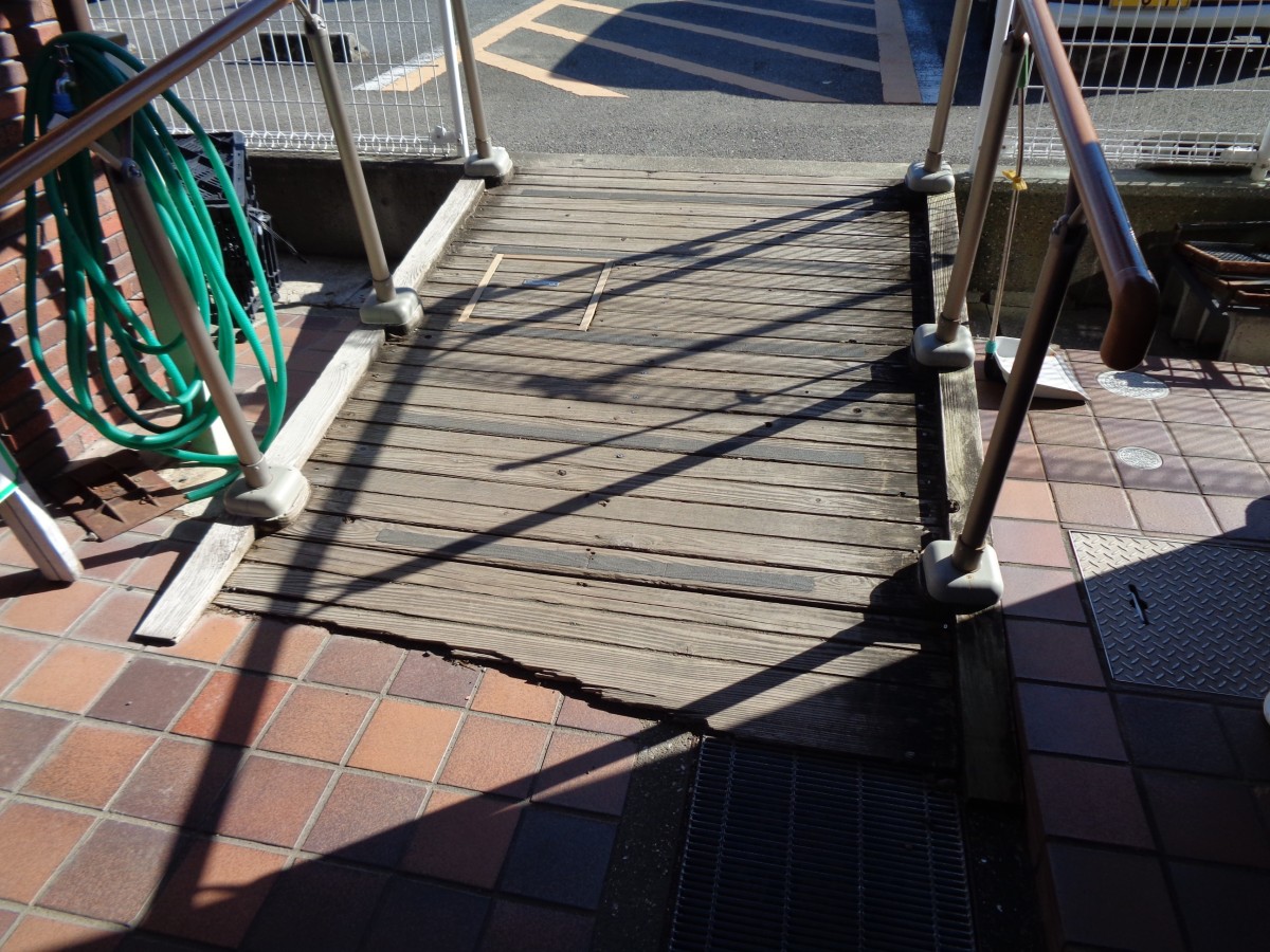 一般駐車場から建物までのスロープの様子