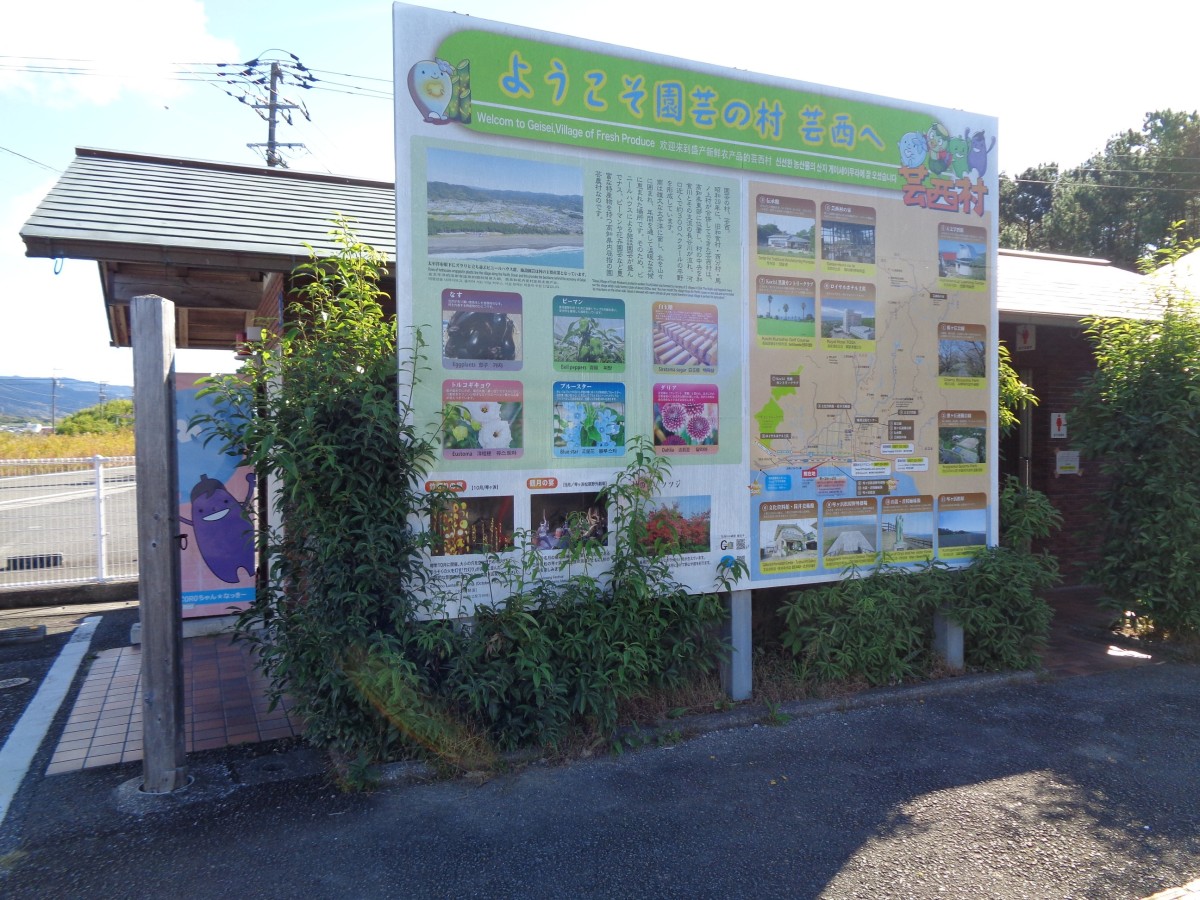 トイレ棟前のパネルには芸西村の観光情報が掲載されている