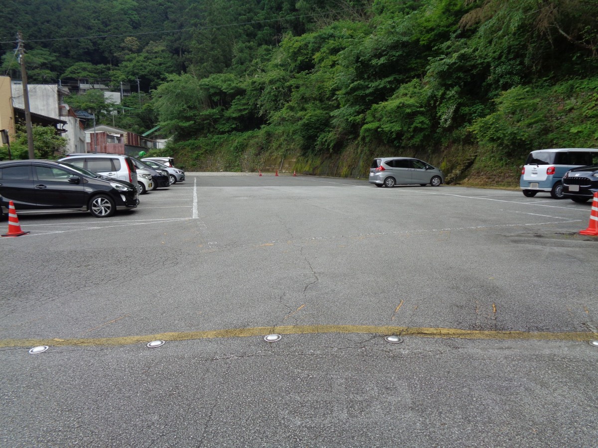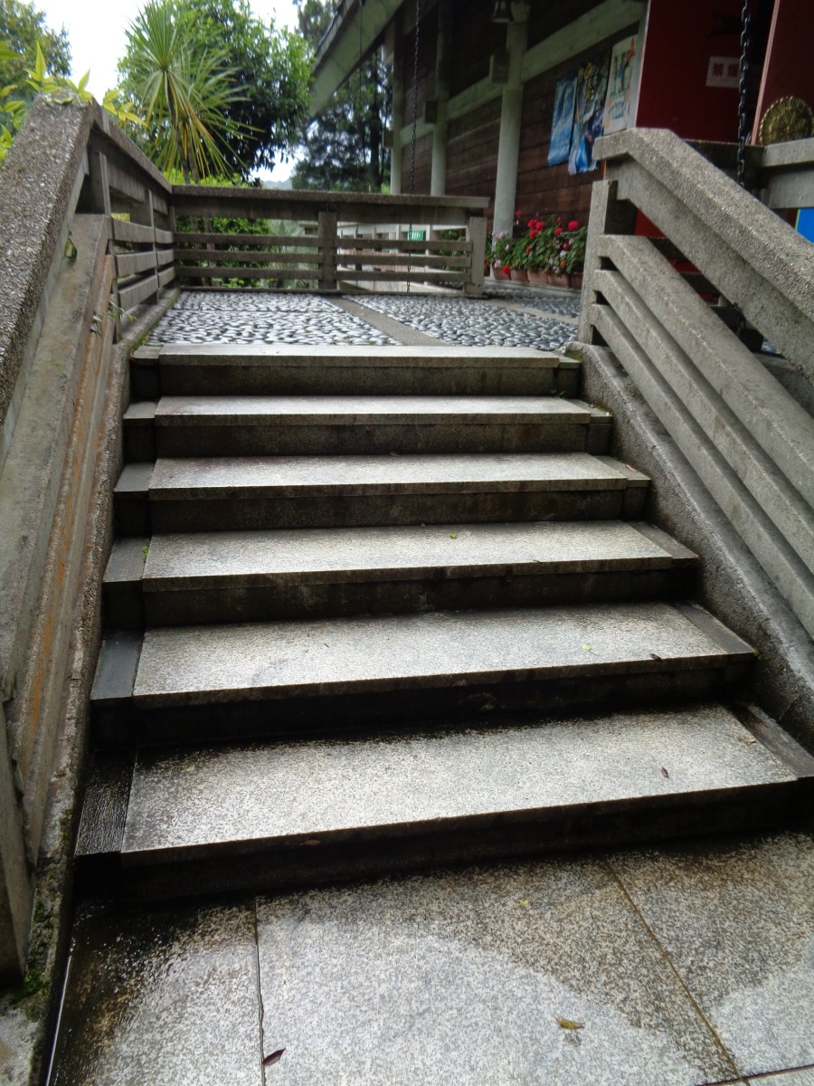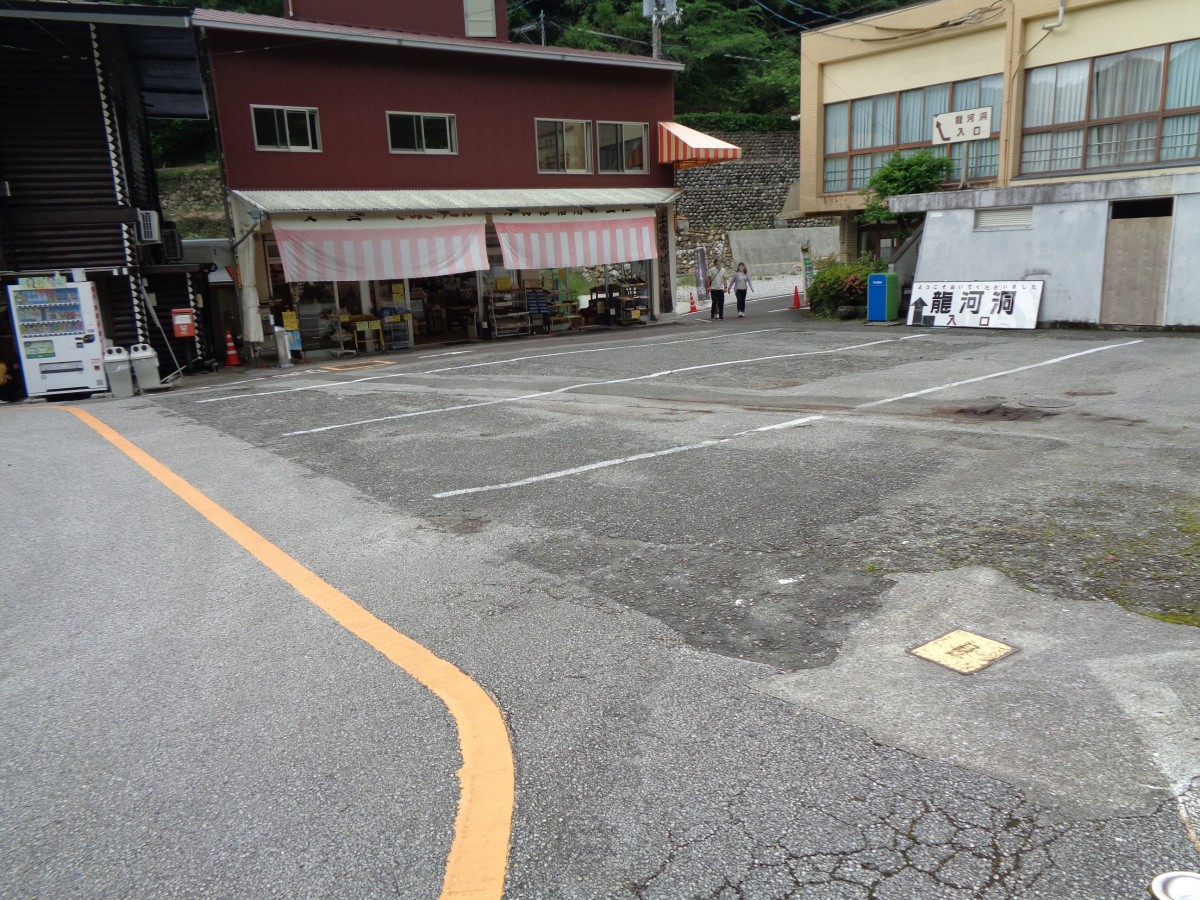エスカレーターで上がって龍河洞の洞窟前まで行き、階段を降りて行く、迂回路がある