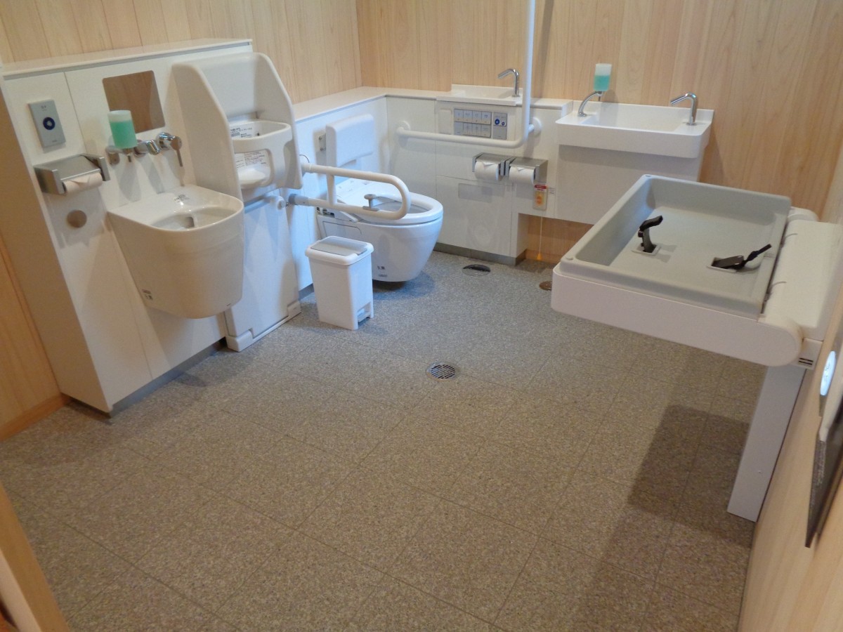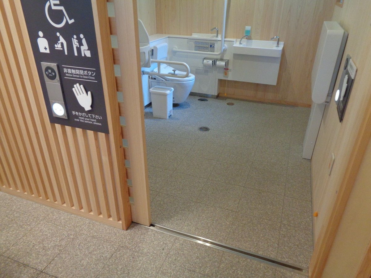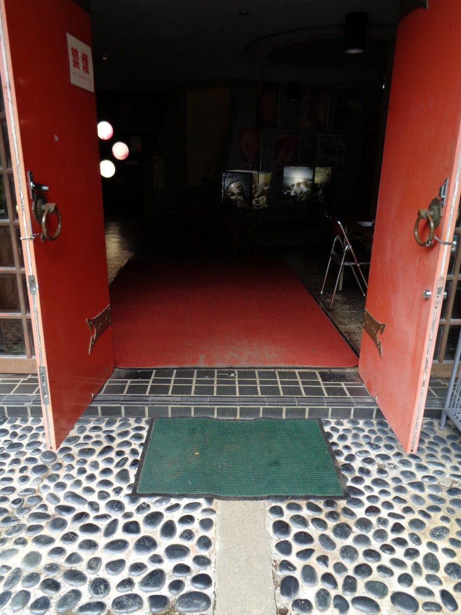 エスカレーターで上がって龍河洞の洞窟前まで行き、階段を降りて行く、迂回路がある