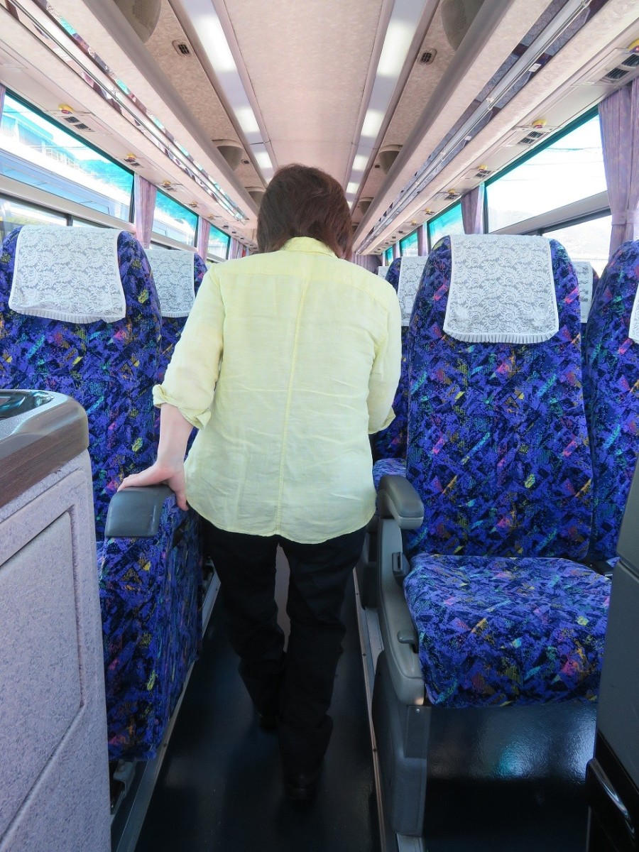 乗降口の様子 座席まで階段あり 左右に手すりあり