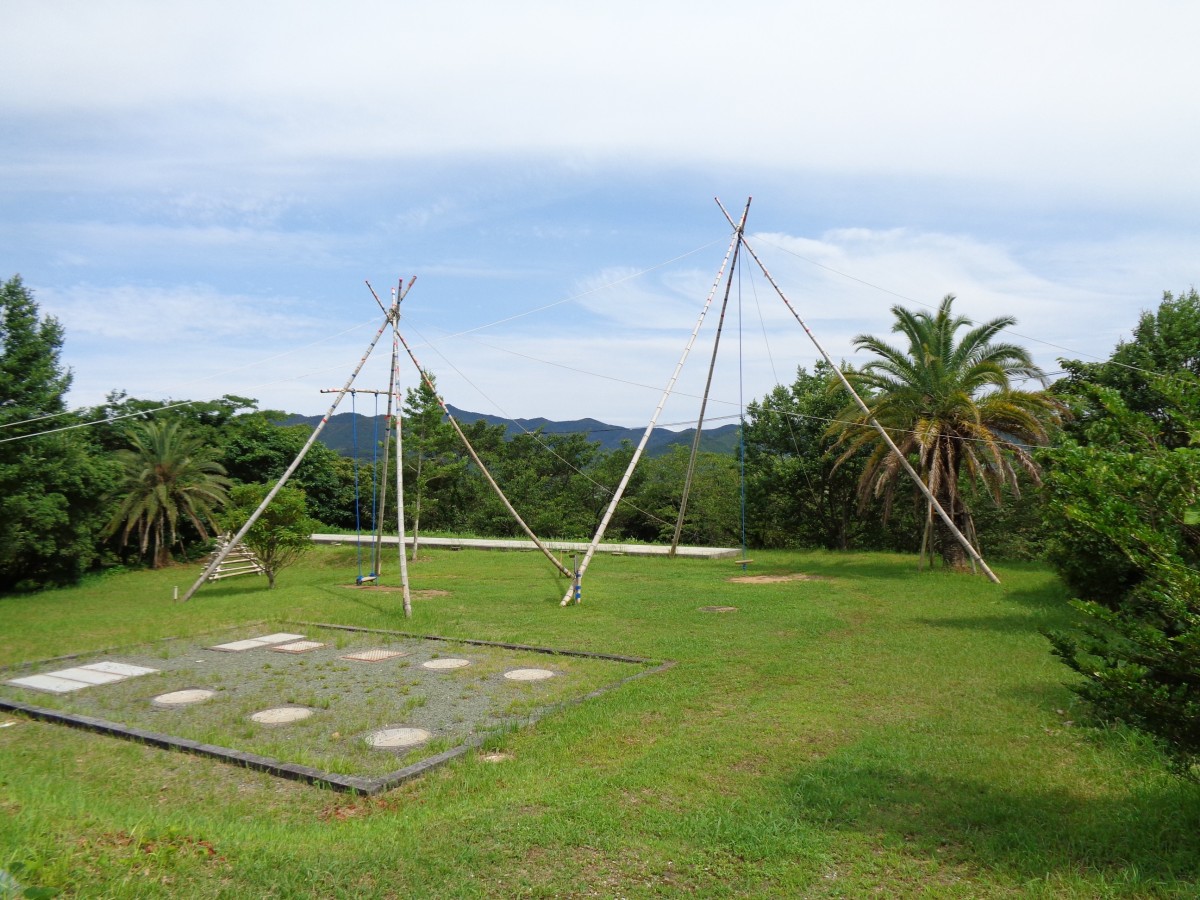 館外 敷地内 まるで空を飛ぶ気分の高さ約8メートル竹の巨大ブランコがあり、大人も乗れる