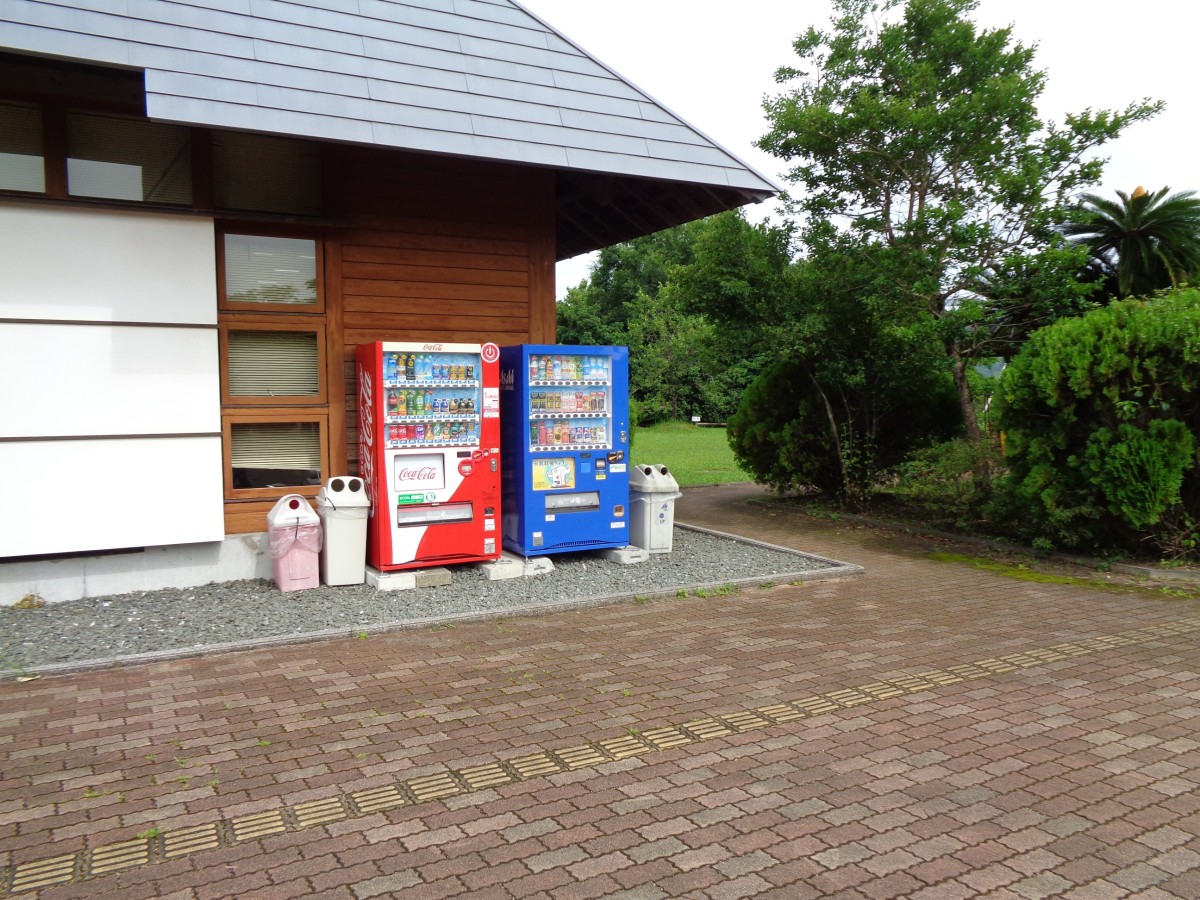 館内は飲食は不可、ただし屋外の広場等での飲食は可 食堂などの飲食提供サービスはない 館外・施設に隣接する建物に自販機あり