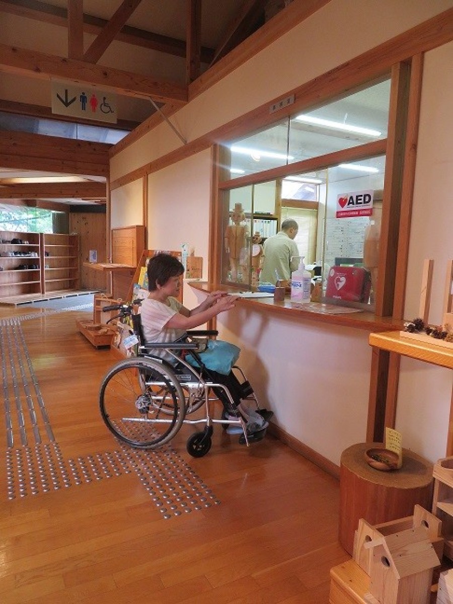 受付の様子 入館は無料、利用時に名簿記載あり カウンターの高さ 90センチ