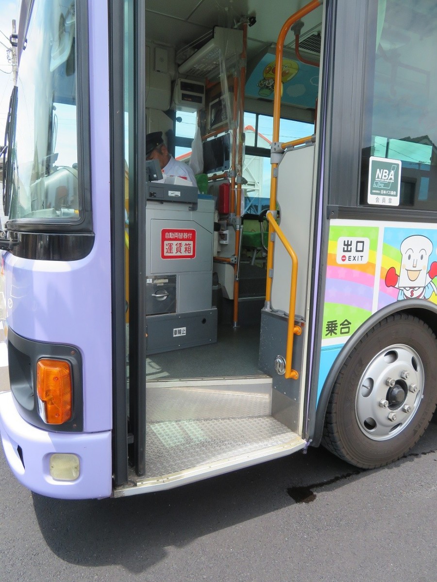 前方降車口 後ろから乗って、前で料金を支払って降りる 車いすの方は降りるのも後方 手すりあり