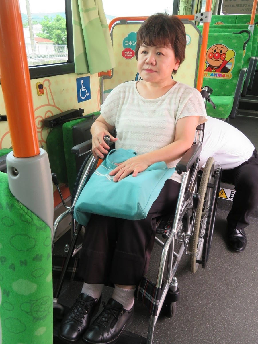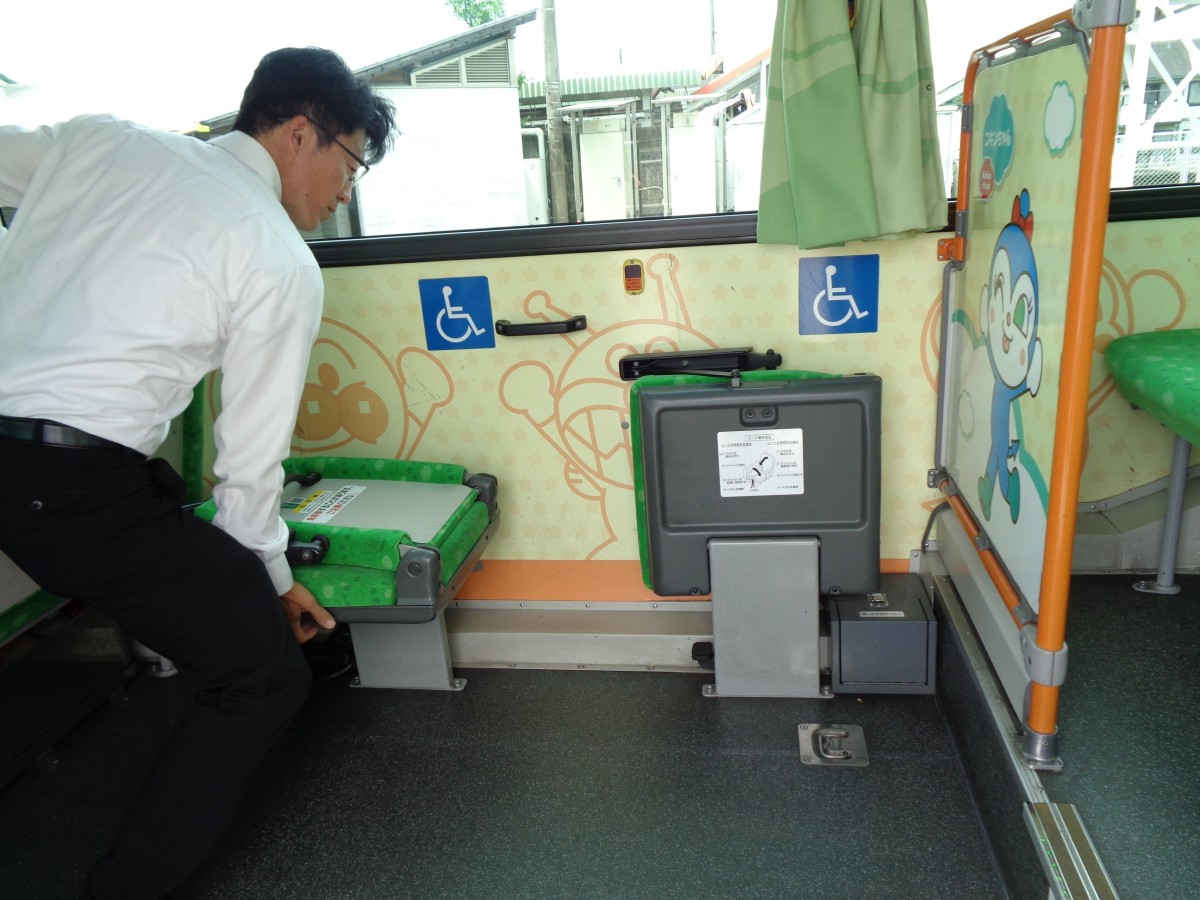身障者用の座席は、後方乗車口を入ってすぐの位置にある
