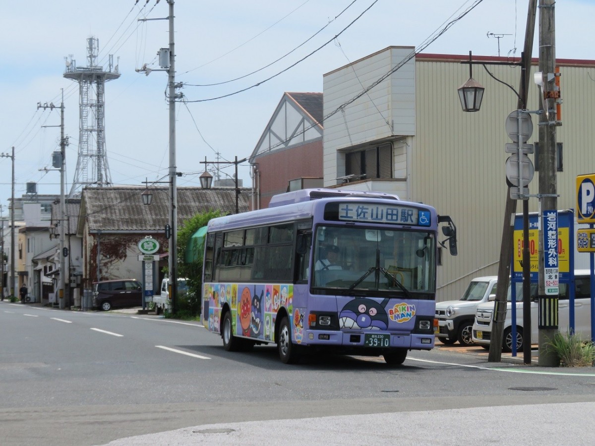 バスの運行区間には29の停留所がある 写真は始発着の停留所「土佐山田駅」