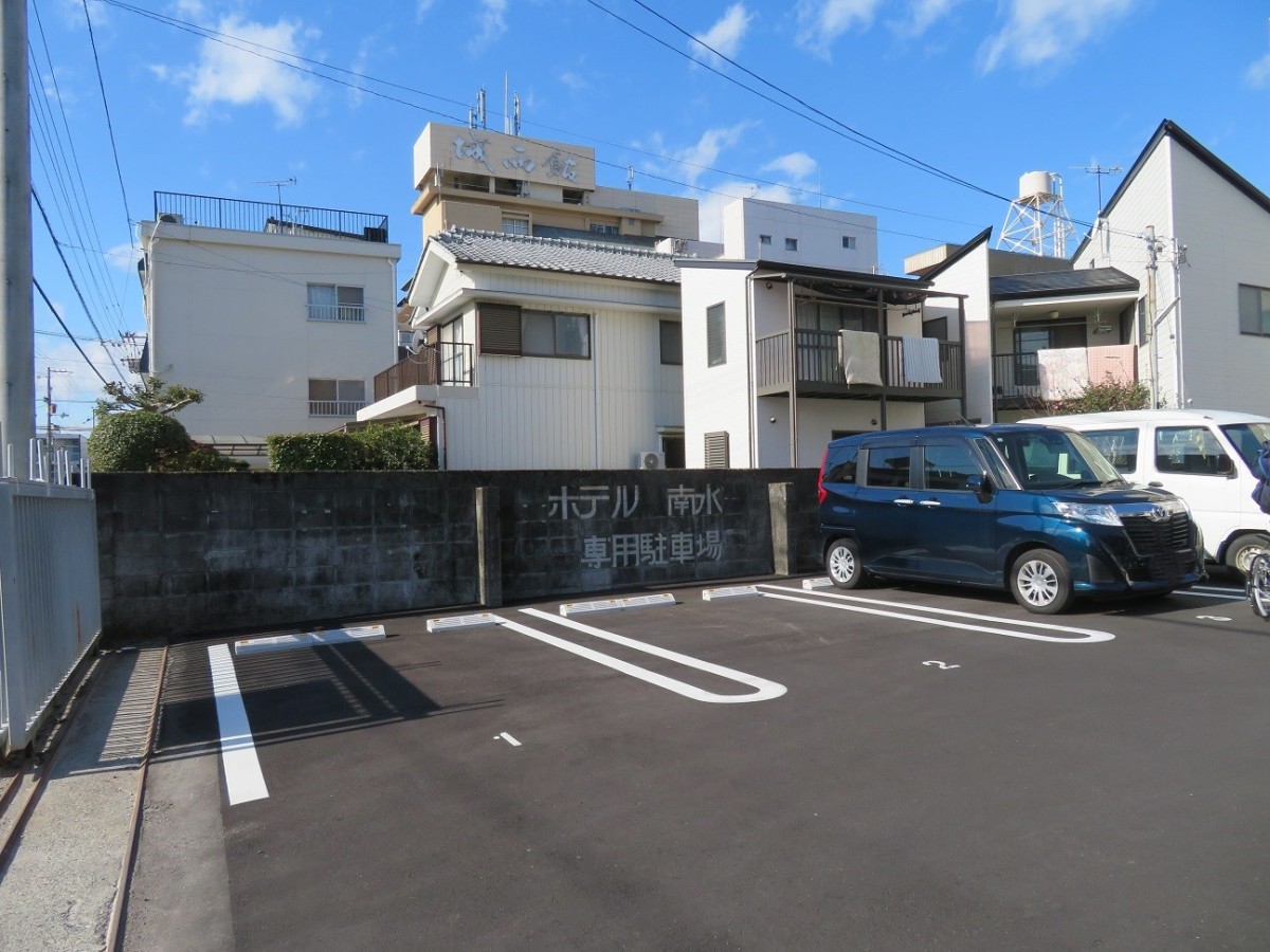 ホテル西側に駐車場がある 一般車18台、バスの乗り入れも可