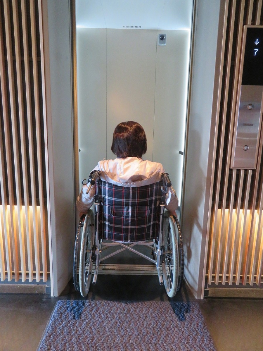 エレベーター(11人乗り) 館内中央にある 入口幅 76センチ