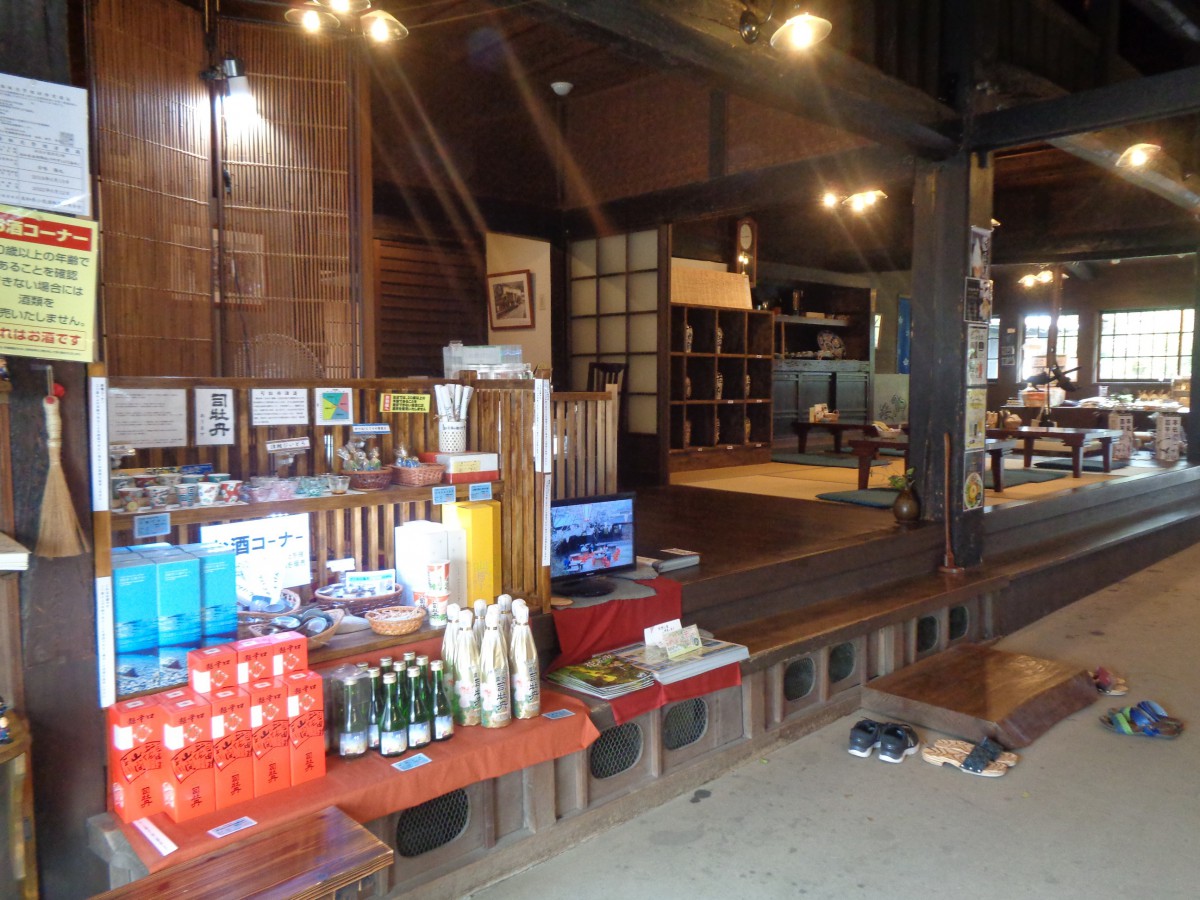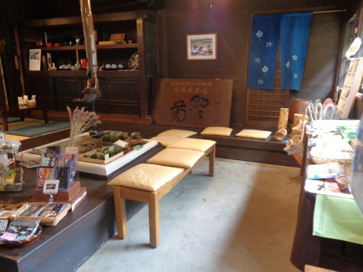 お土産品コーナーにはベンチ席あり 車いす利用者で座敷に上がれない方はこちらで休憩ができる