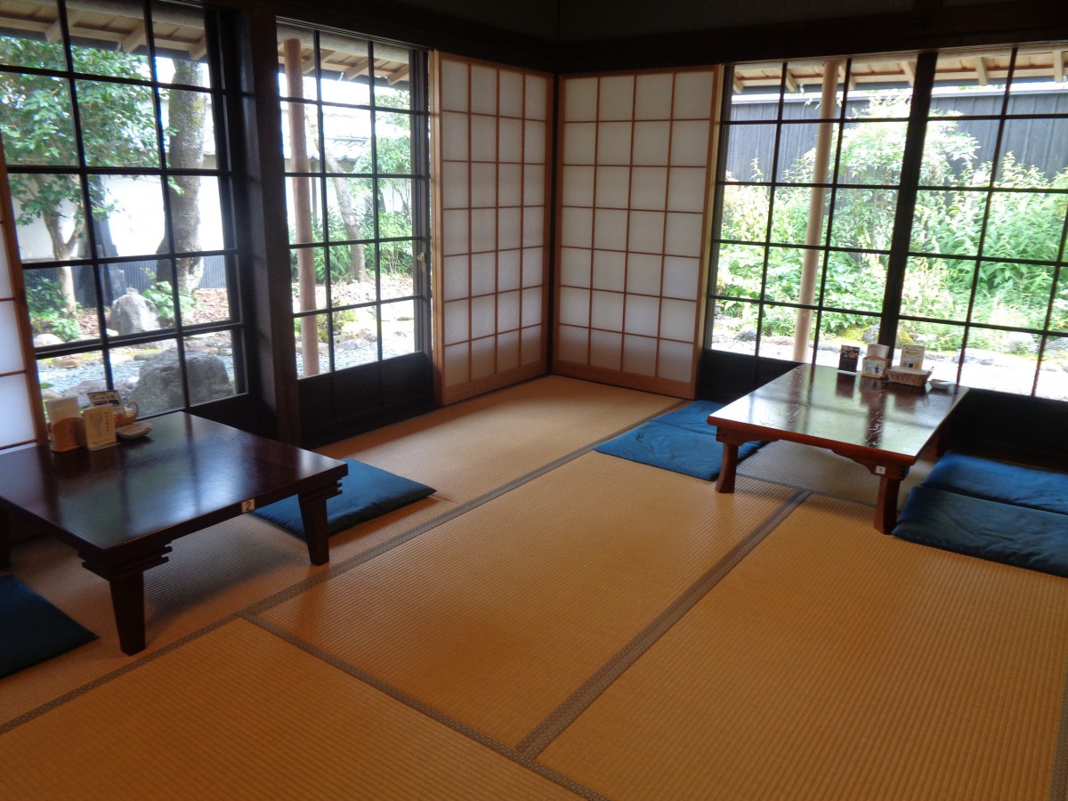 施設内 受付カウンター周辺も6~7度傾斜あり 小上がり前の木製踏み台高さ10センチ