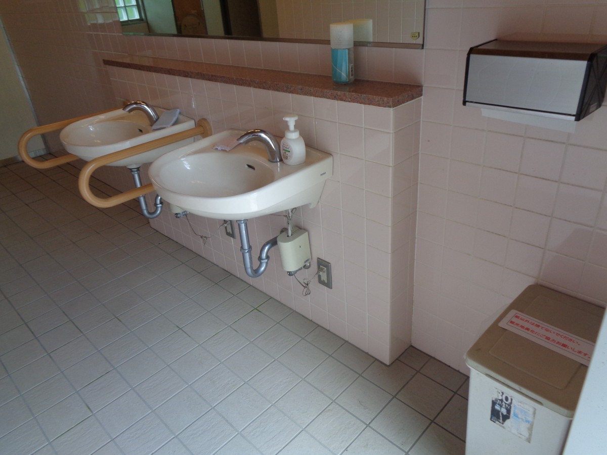 女性用一般トイレ ゴミ箱 洗面台に手すりあり 洗面台の下の高さ65センチ(男女とも)