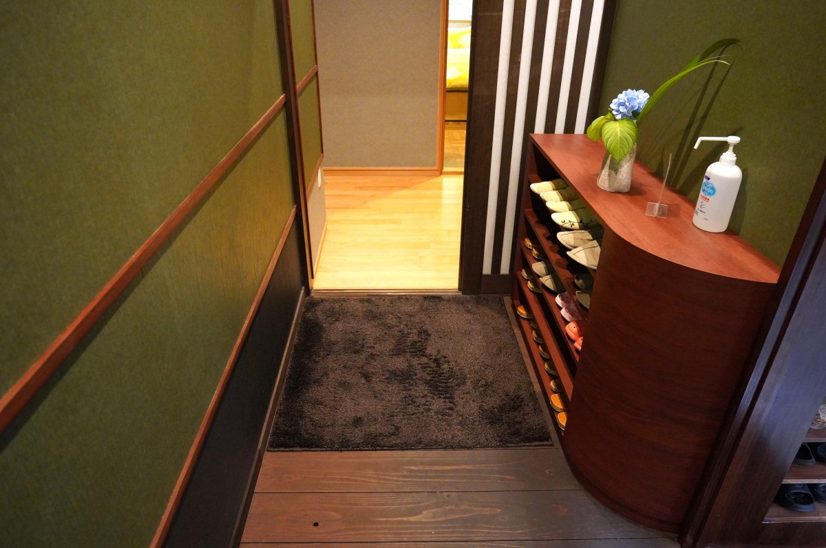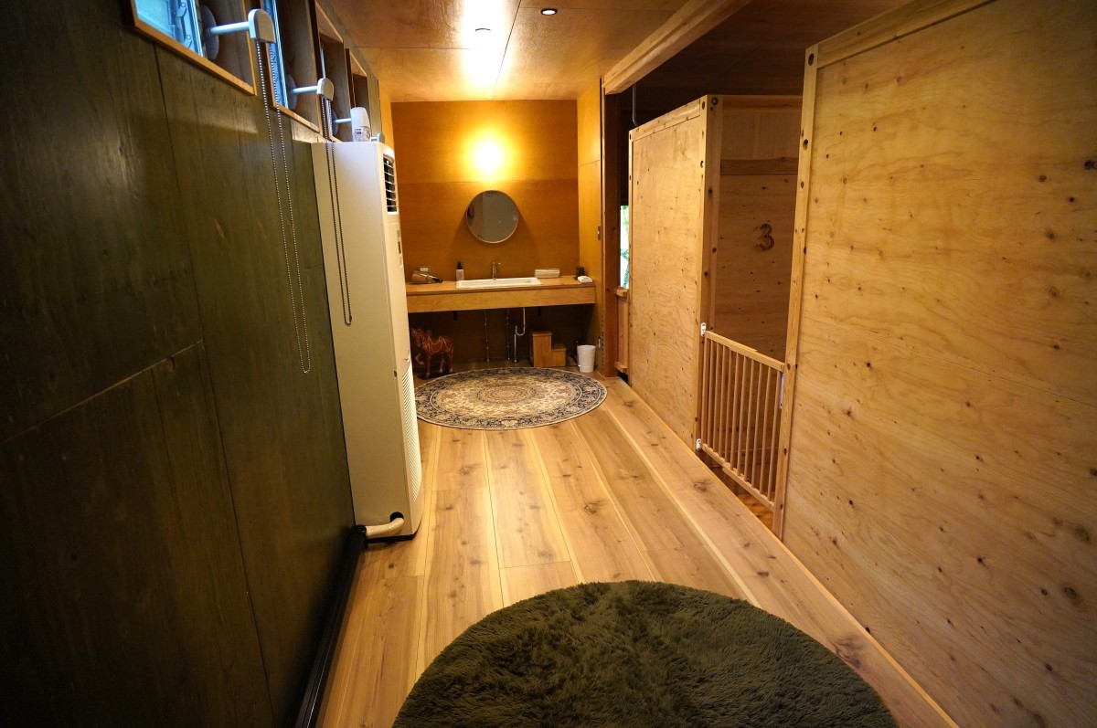 1階 ファミリールーム(ペット可) 客室入口と別途ペット用の入口あり ペットは木製サークル内で過ごす