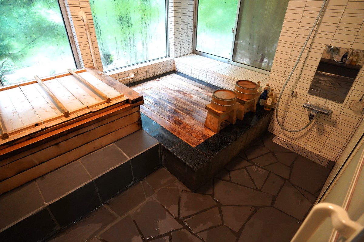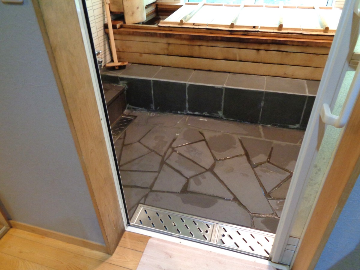 ひのきの湯 浴室入口の様子 入口幅70センチ、段差あり(2センチ)