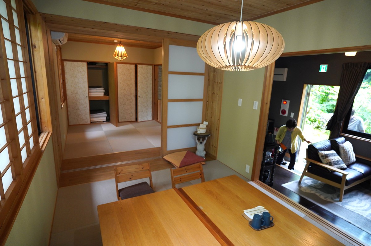 離れ棟 和洋室の中の様子(ペット可) 客室入口と別途ペット用の入口あり 和室の隣にペットサークルがある