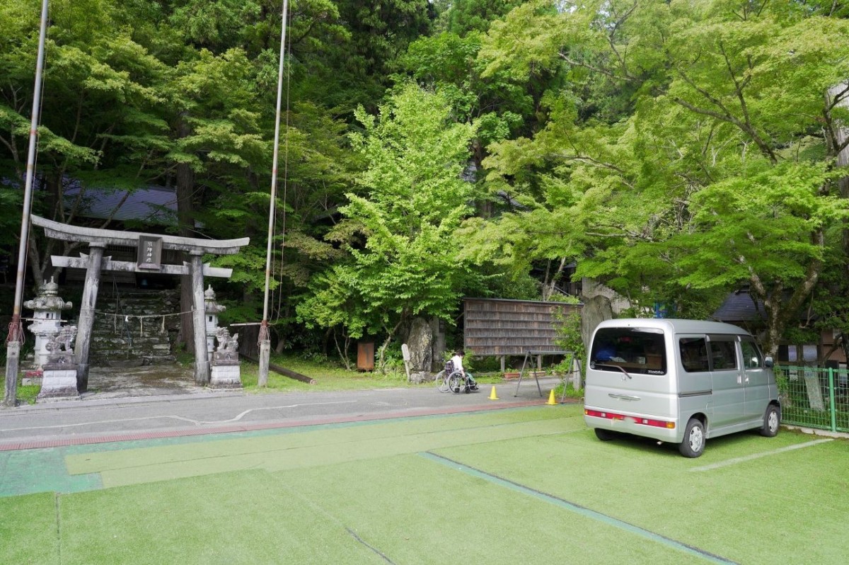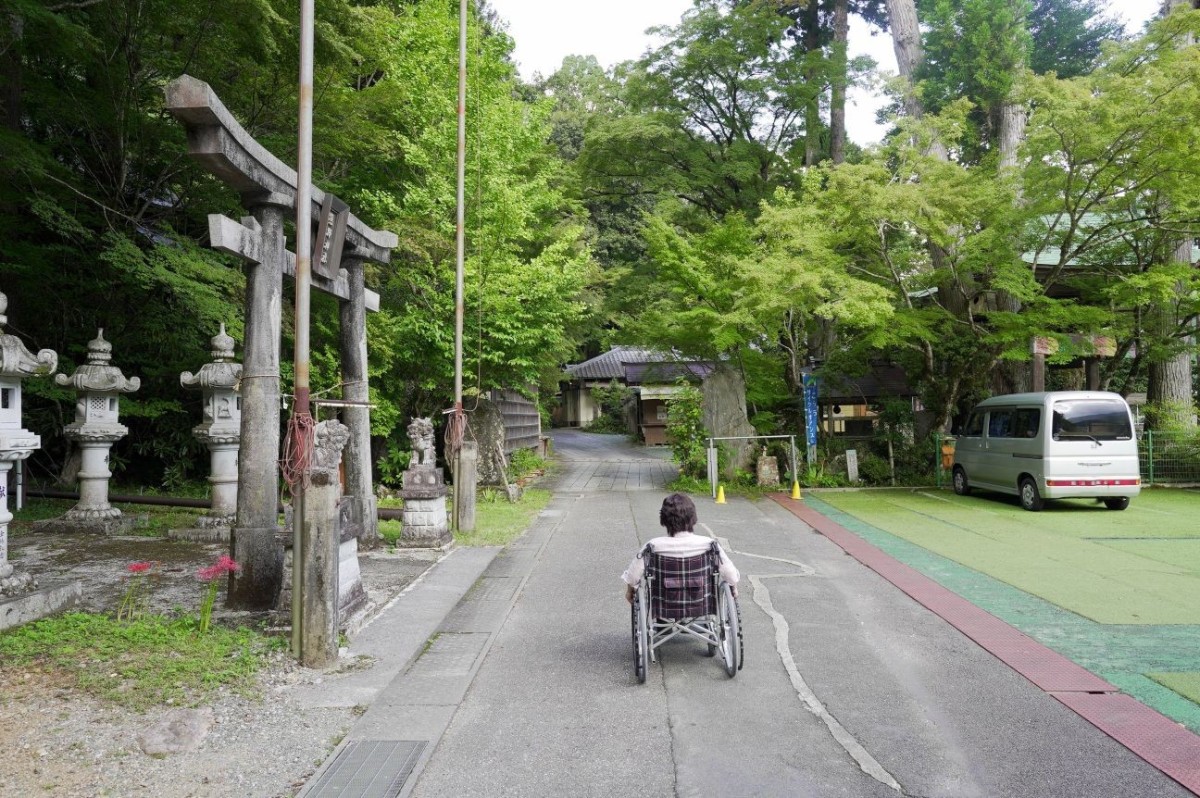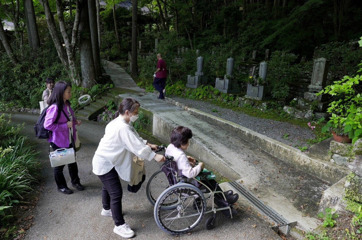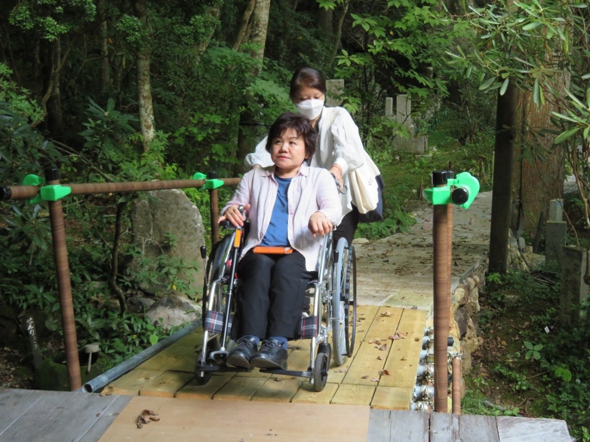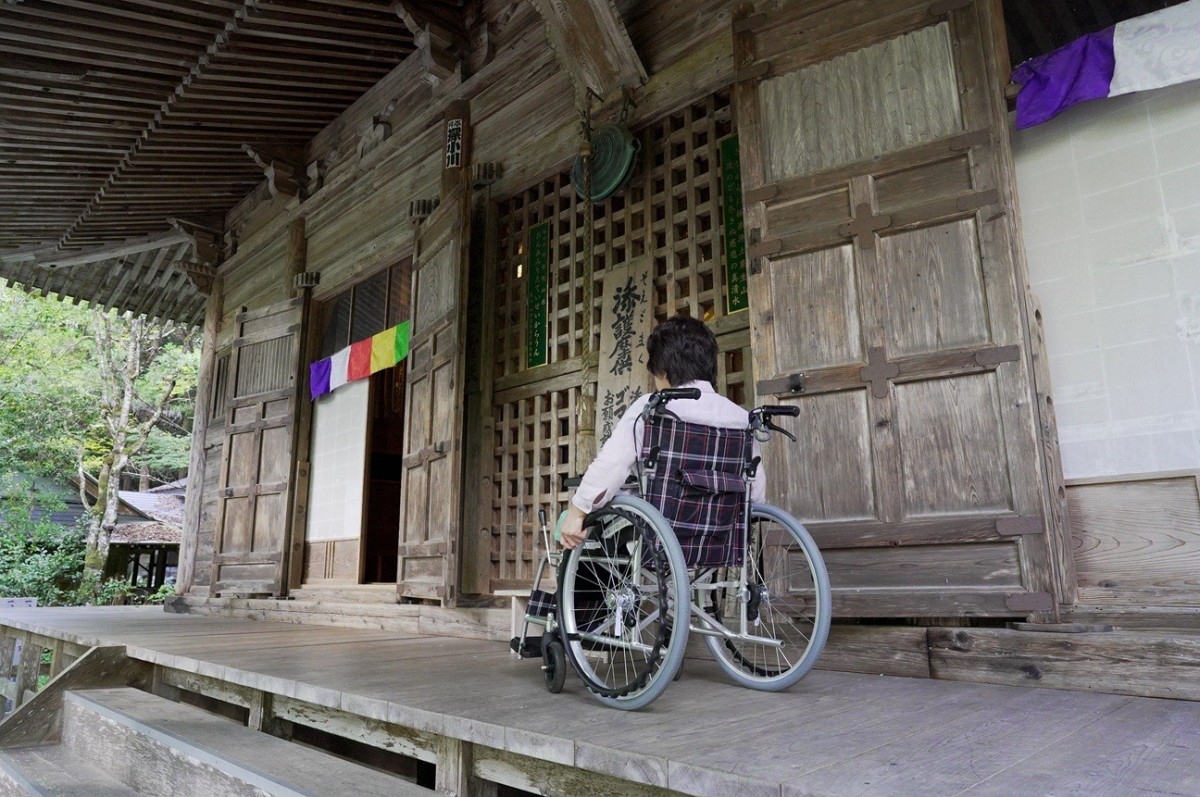 本堂前のスロープの様子(幅130センチ、斜度9度)