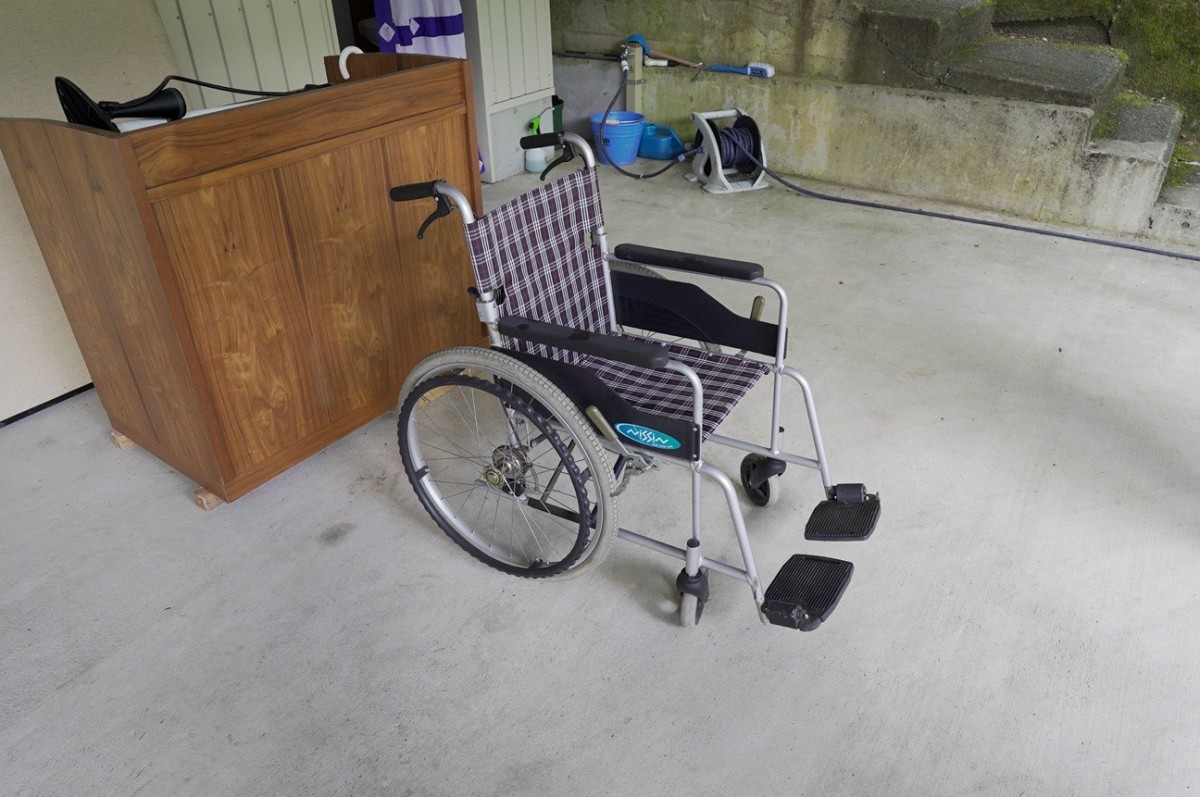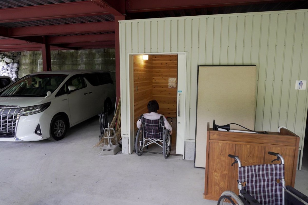 ここから先は土足禁止のため、車いすはタイヤを拭いてから上がってください(タイヤカバー貸出あり)