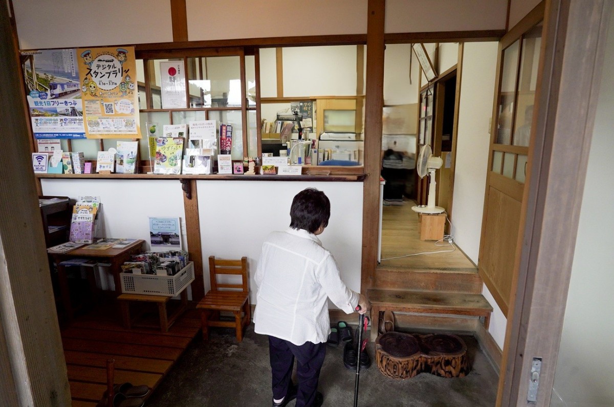 旧市川医院(企画展)側 展示を見ている様子 (最小入口幅69センチ)