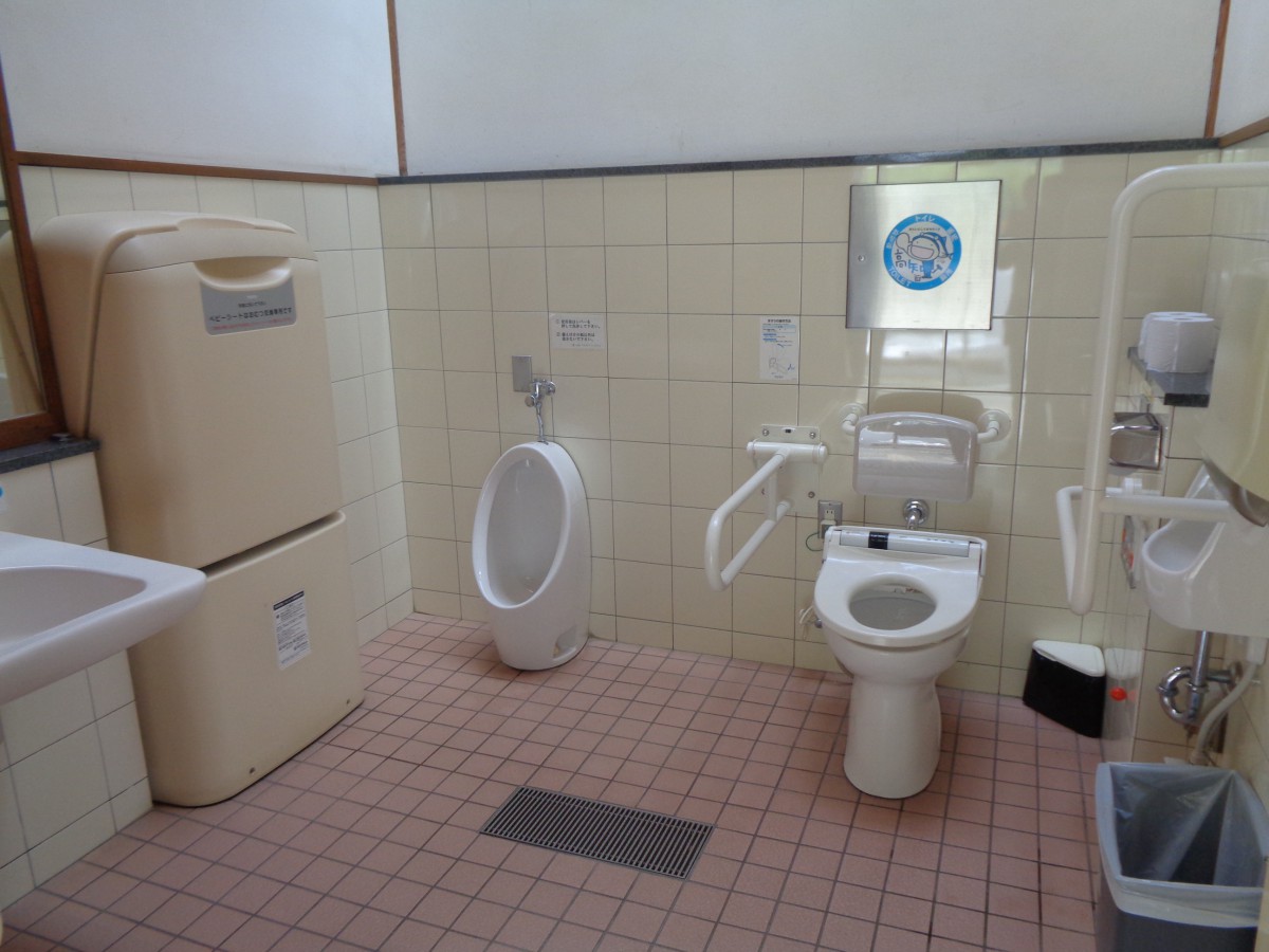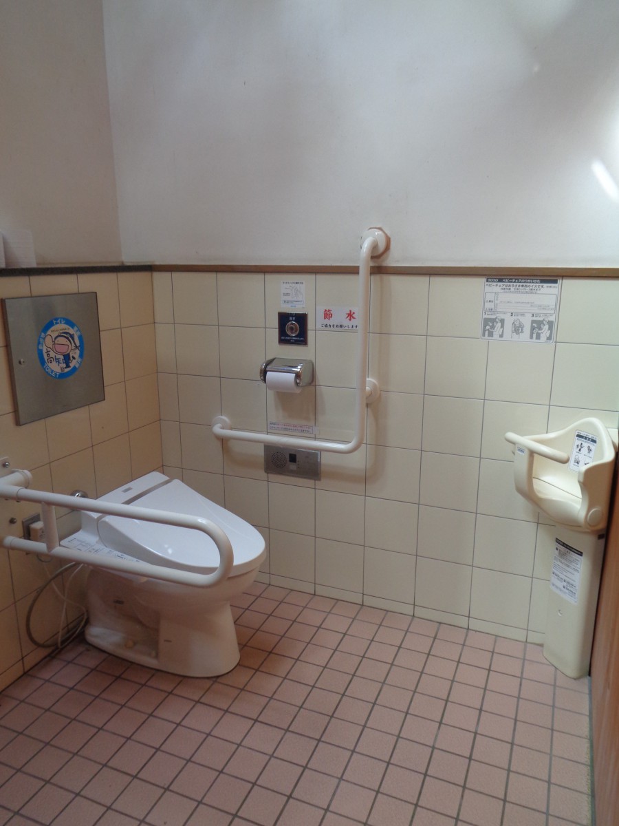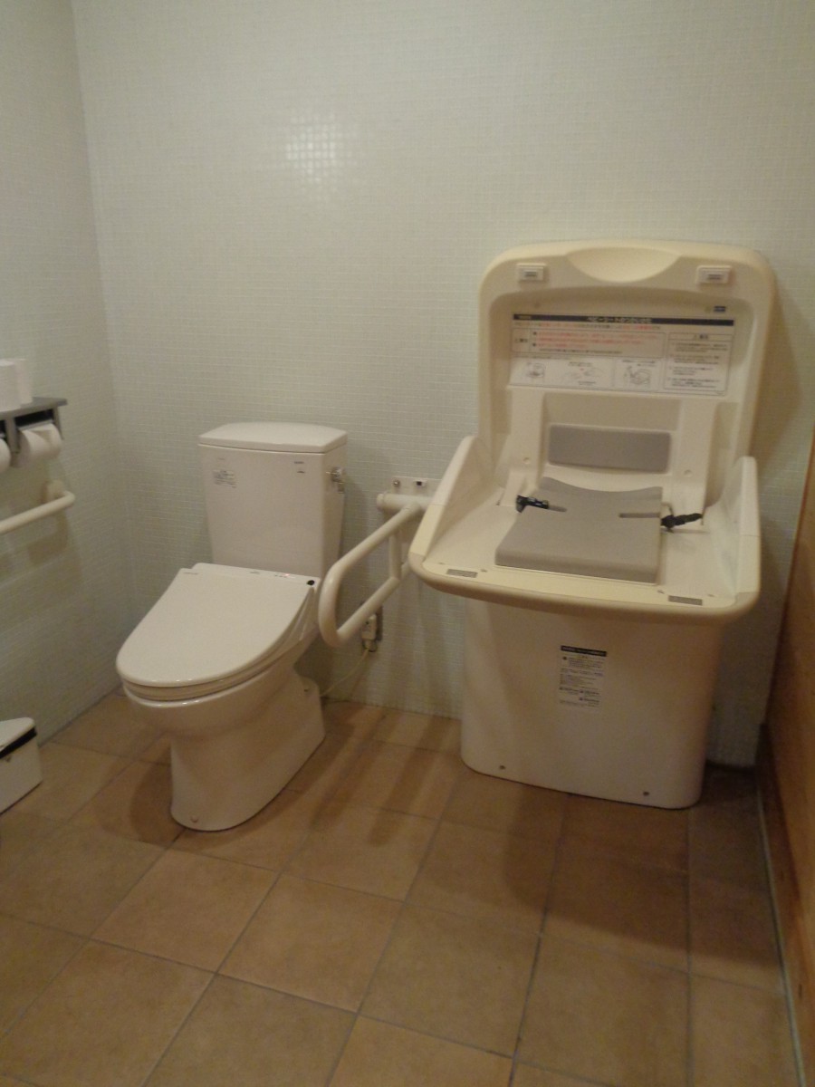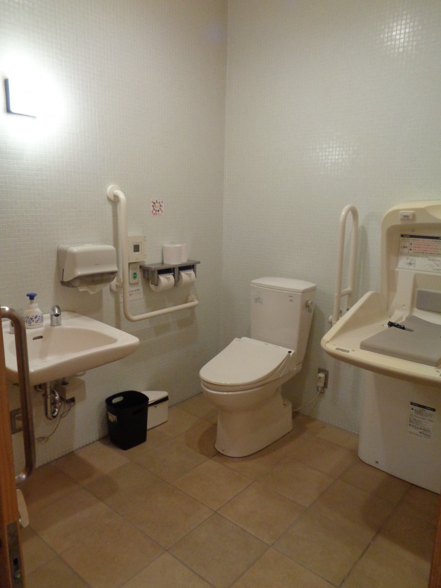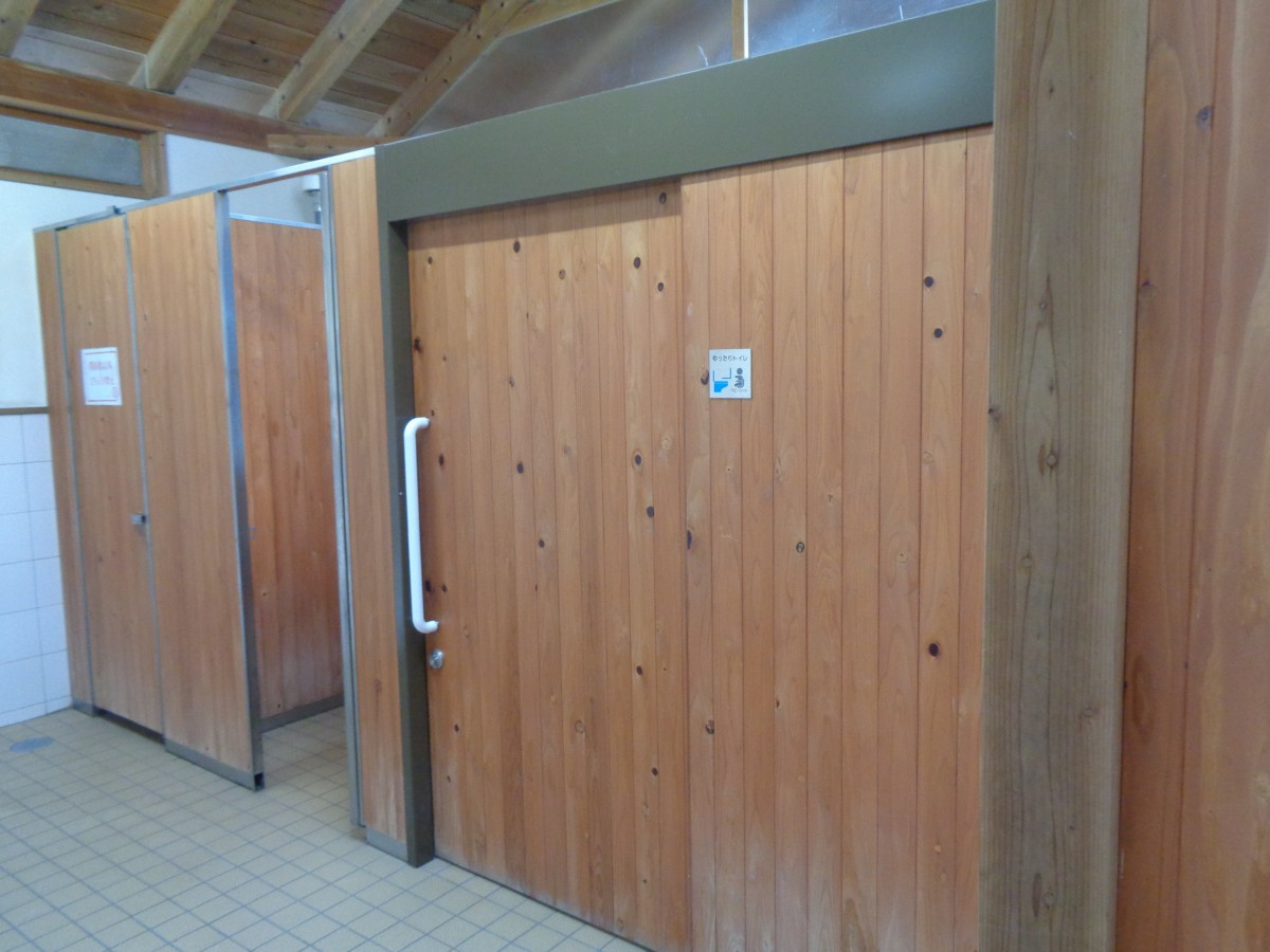 一般トイレには男女とも一カ所ずつ「ゆったり個室」あり スライド戸 入口幅83センチ 段差なし