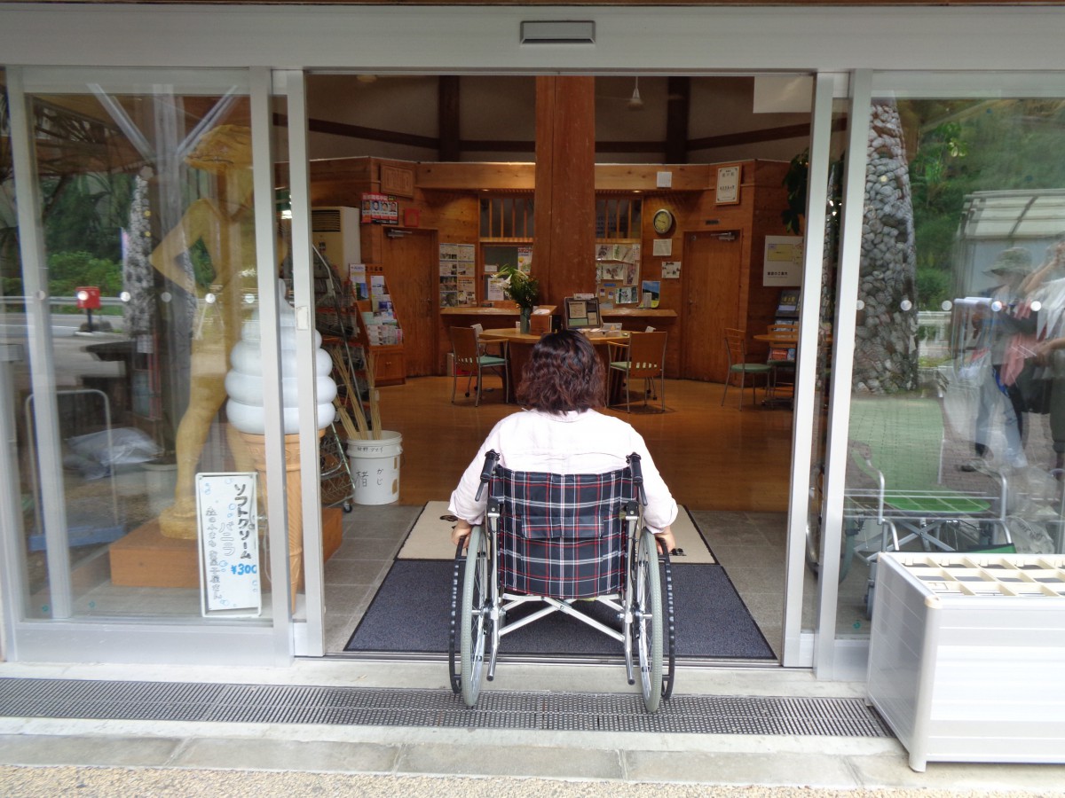 情報コーナー正面入口 自動ドア 入口幅154センチ 段差なし