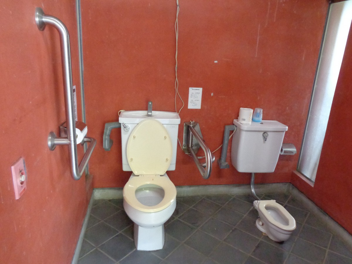 駐車場内トイレ棟 車いす対応トイレ、一般共用トイレ男性用・女性用あり