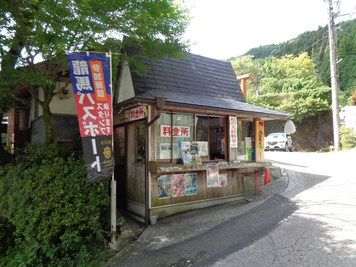 車いす利用者は料金所で相談すると杉の大杉に近いルートまで車で行くことができる 2台分の駐車スペースあり