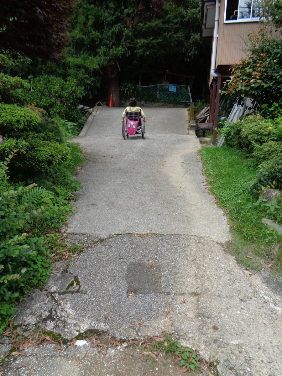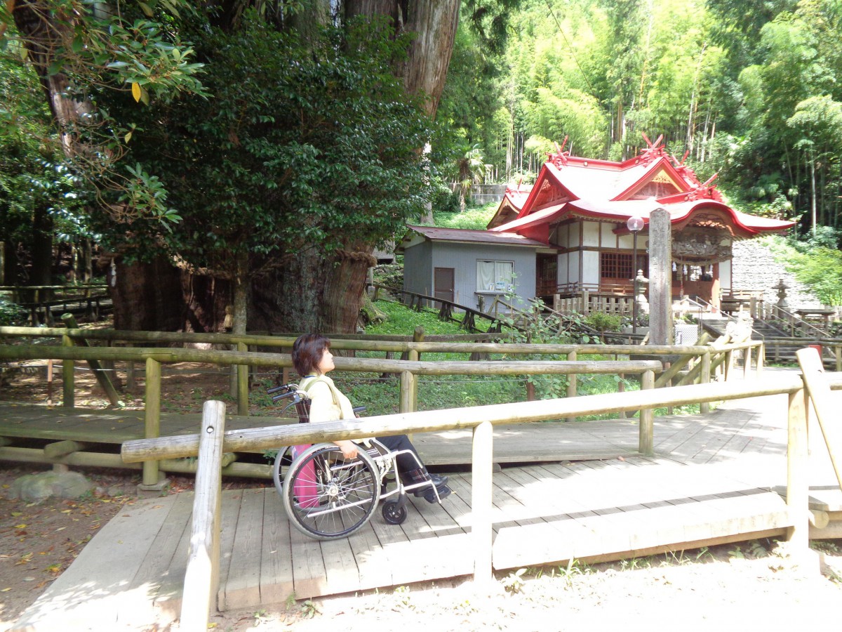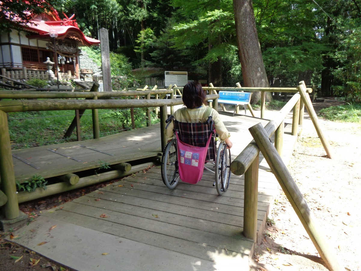 大杉までの経路には長い急な坂(傾斜9~14度)があるので車いす単独では厳しい