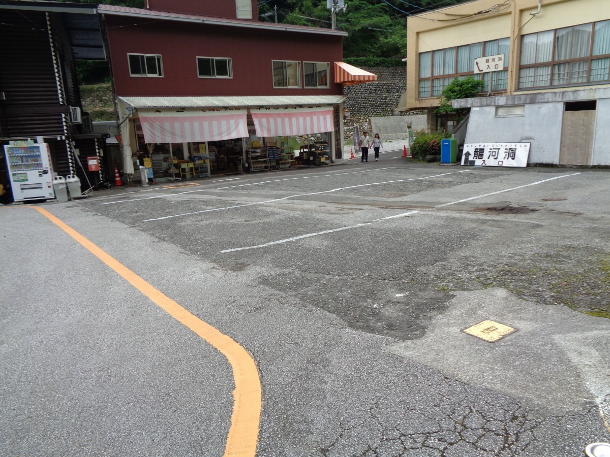 駐車場 看板はないが、龍河洞観光センター横に身障者用駐車スペースを設けている