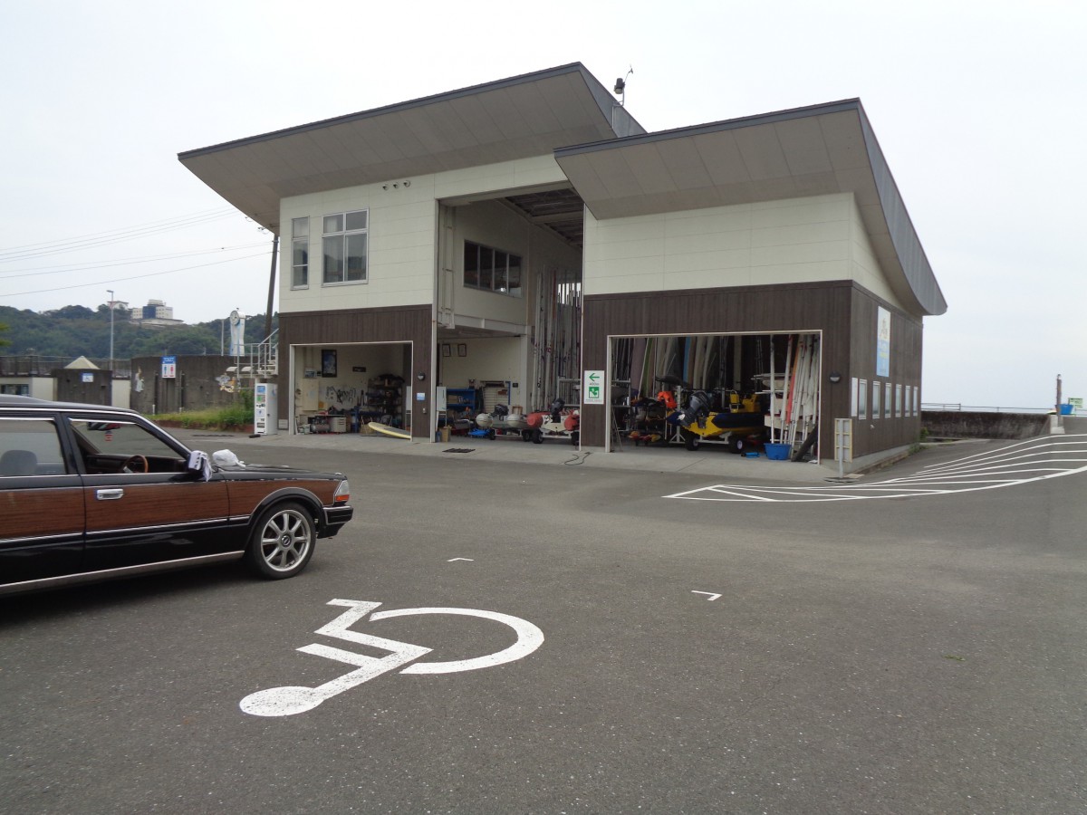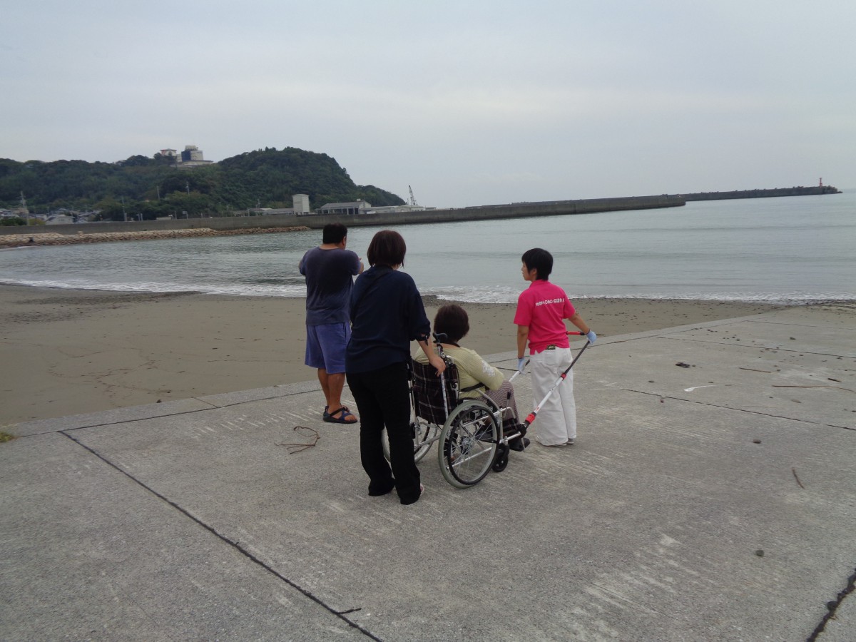 マリンスポーツ体験場所 傾斜があり、濡れていると滑るので車いすの移動には気をつける