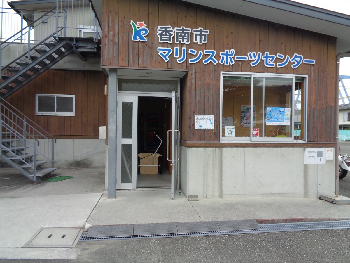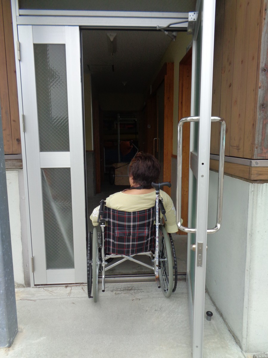 マリンスポーツセンター内 車いす対応トイレ入口 スライド戸 入口幅86センチ